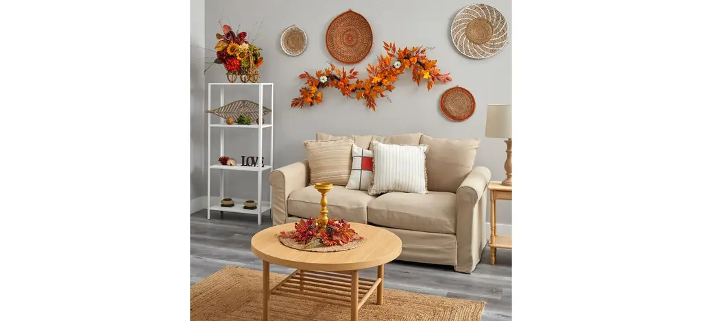Set a scene at the table during Thanksgiving with this 6' Harvest Foliage Artificial Garland. Inspired by nature, this high-quality accent has variegated fall leaves in different shades that will transform your home into a fall foliage destination. It is versatile yet practical, pairing well with other fall accents such as candle holders, wreaths, or fall-inspired arrangements. With a length of 6", this garland is perfect for any space; add to a dining table, living room, mantel or entry way. Your garland will look beautiful for years to come; simply wipe clean with a soft dry cloth when needed.