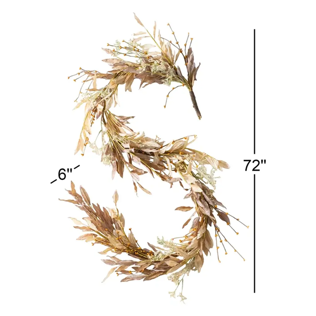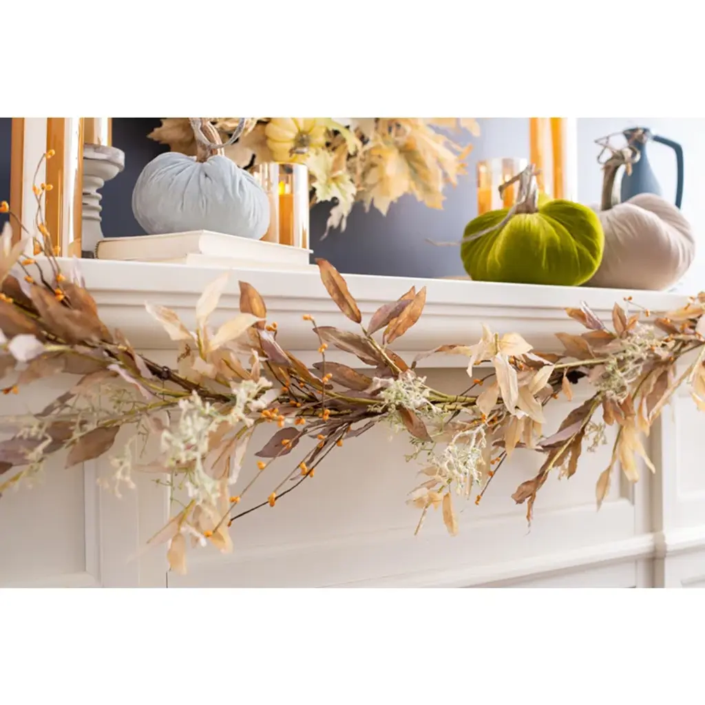 Packed full of fresh looking leaves that will liven up any space, our Fresh Dried-Look Cream Olive Leaf Mantle Garland Table Runner can make for the perfect fall season accent! Use to decorate your fireplace mantle, your dinner table, or even your front door! At Darby Creek Trading we take pride in producing unique and luxurious floral designs. We source the best quality materials available with the utmost care. We guarantee the quality of all of our floral designs