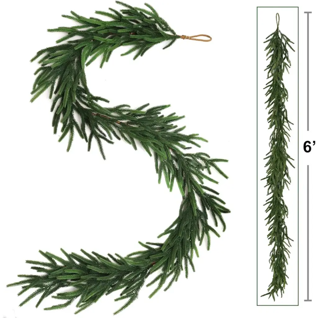 6' Real Touch Norfolk Garland - Lifelike Artificial Pine, Soft Needle Texture, Holiday & Christmas Decor