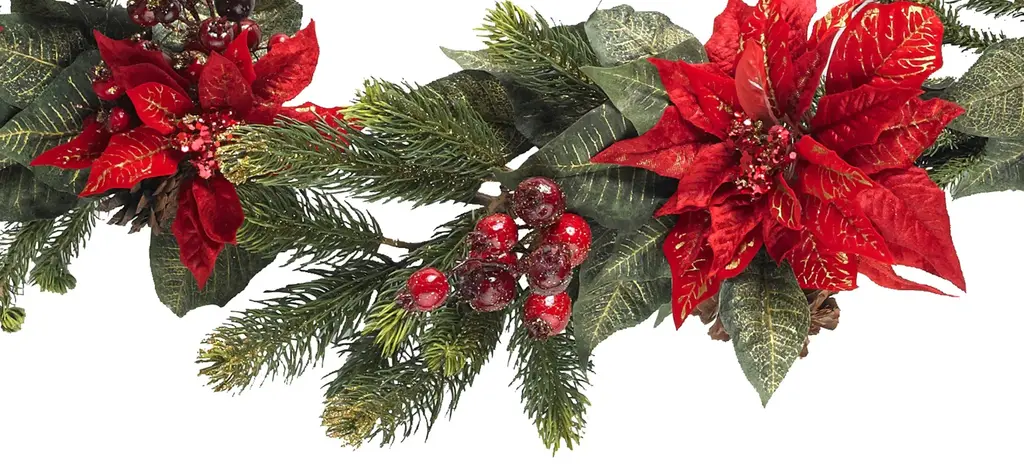 60" Poinsettia & Berry Garland