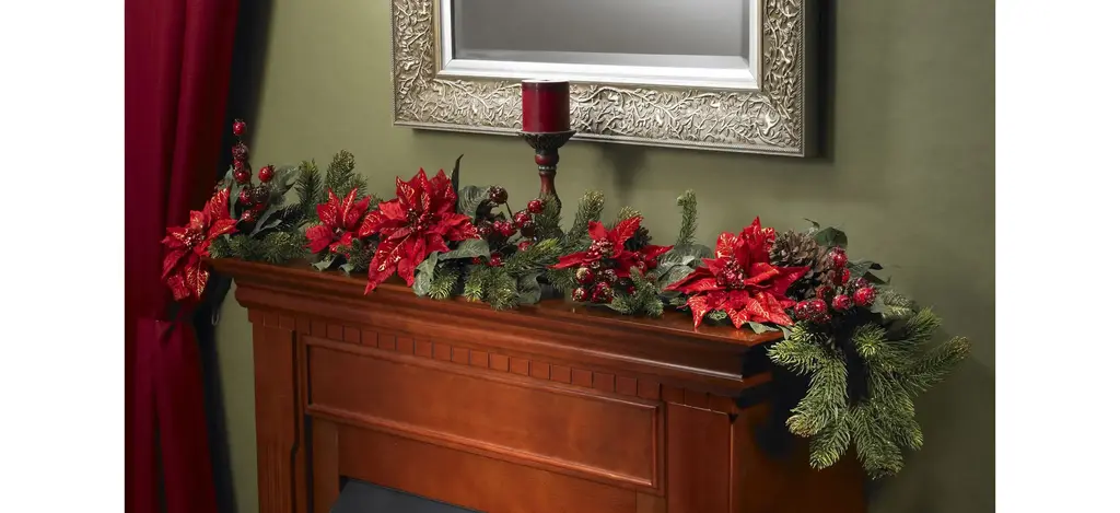 Decorate with style this holiday season with this elegant Poinsettia Garland. It is sixty inches (that's five full feet) of holiday charm, winding and twisting around your banister, entryway, exposed beams, or anywhere else a bit of holiday festivity is needed. Beautiful red leaves sit on top of lush greenery and pine stems, with faux berries and pinecones completing the holiday touch - cheers!
