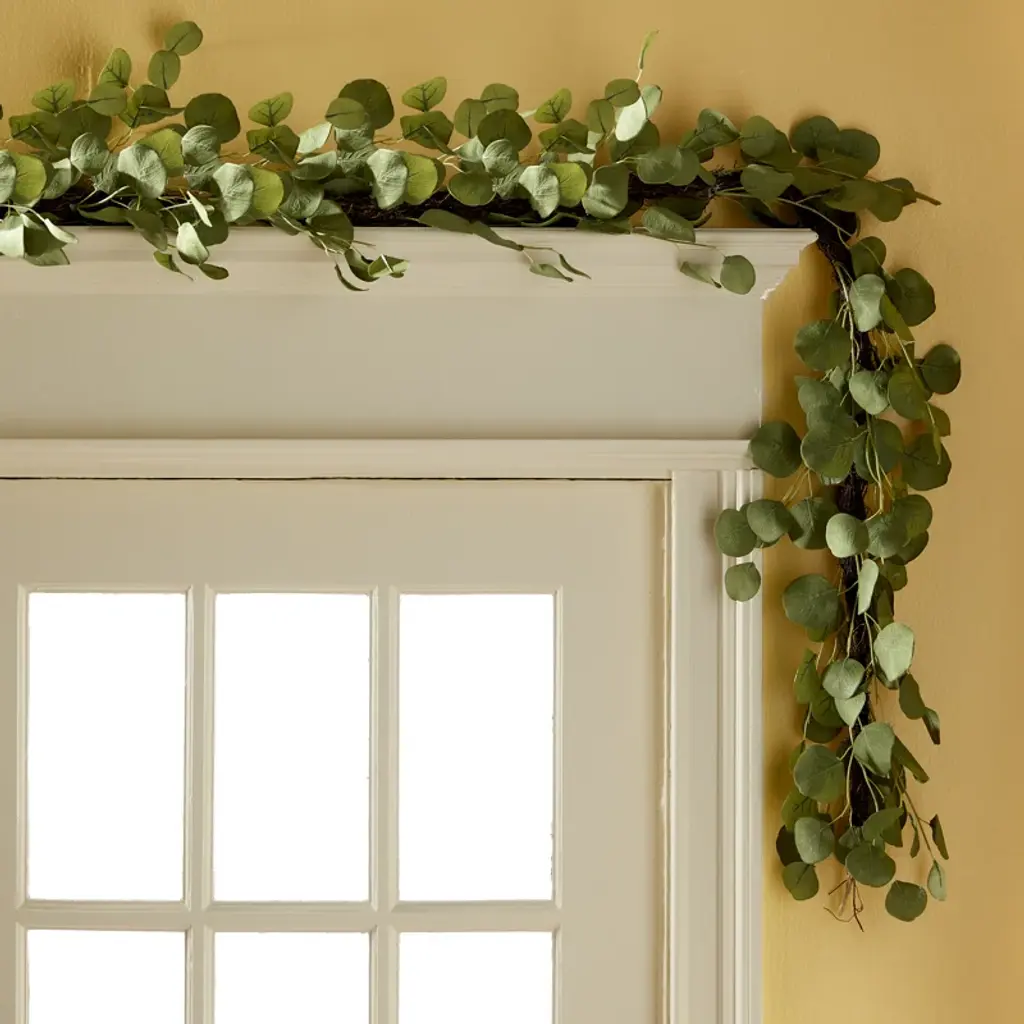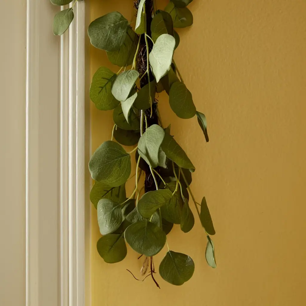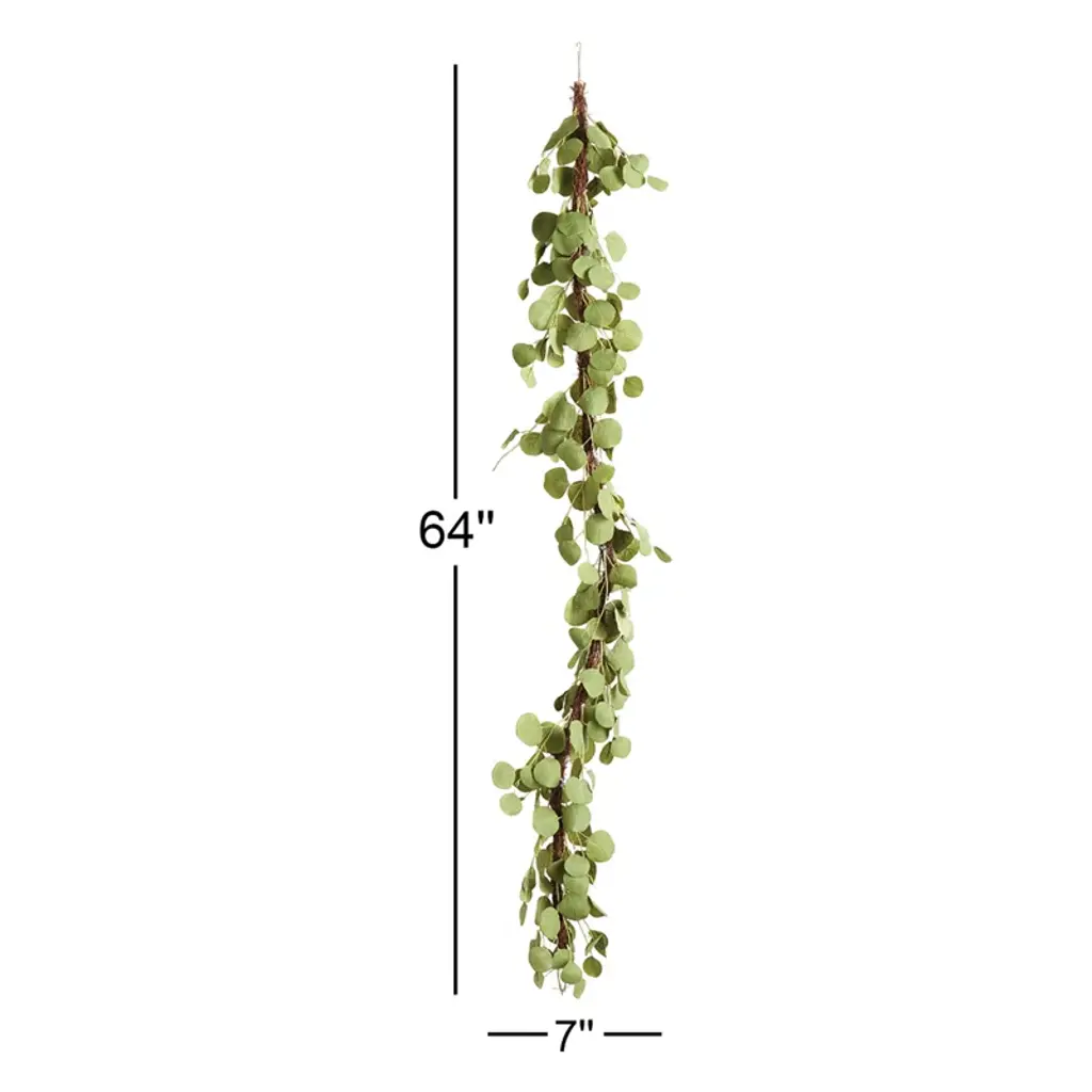This faux eucalyptus garland is a must-have accent on its own or woven into other greenery garlands or a wreath. The distinctive green tones of the eucalyptus leaves add a light and fresh look to any color palette. Great for a covered porch, or use as a unique centerpiece.