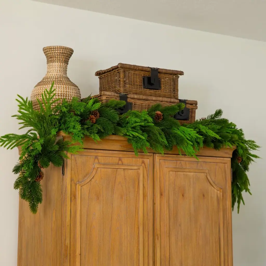 6Ft. Artificial Mixed Pine And Norfolk Garland With Pinecones