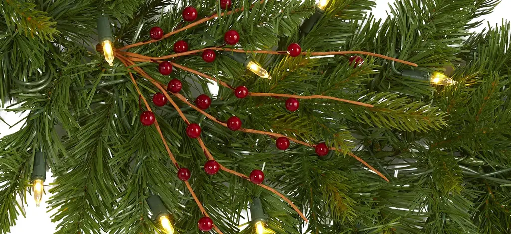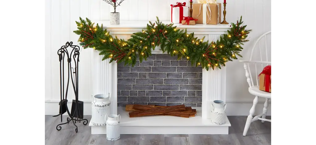 Complete your holiday decor scheme this Christmas with the help of this artificial winter garland, intricately designed from realistic looking evergreens (120 bendable tips) to convey a lifelike appearance, accented throughout with faux holly berries. Arriving pre-strung with 50 clear LED lights to add a soft, holiday glow to horizontal surfaces, this 6' long artificial garland will undoubtedly complete a traditional holiday setting for years to come.