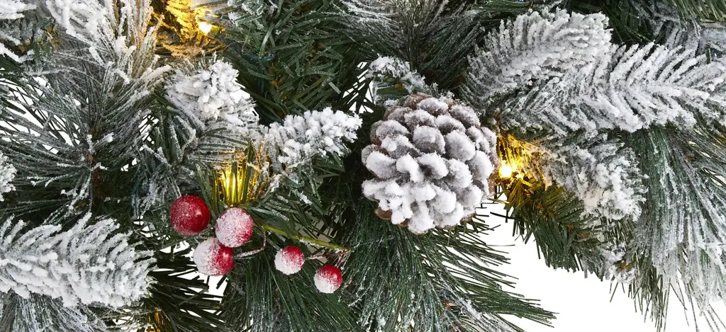 Complete your holiday decor scheme this Christmas with the help of this artificial winter garland, intricately designed from realistic looking seasonal evergreens and completely flocked in a dusting of faux snow to re-create your own winter wonderland. Arriving pre-strung with 50 lights to add a soft, holiday glow to horizontal surfaces, this 6' long flocked artificial garland will undoubtedly complete a winter-inspired setting for years to come.