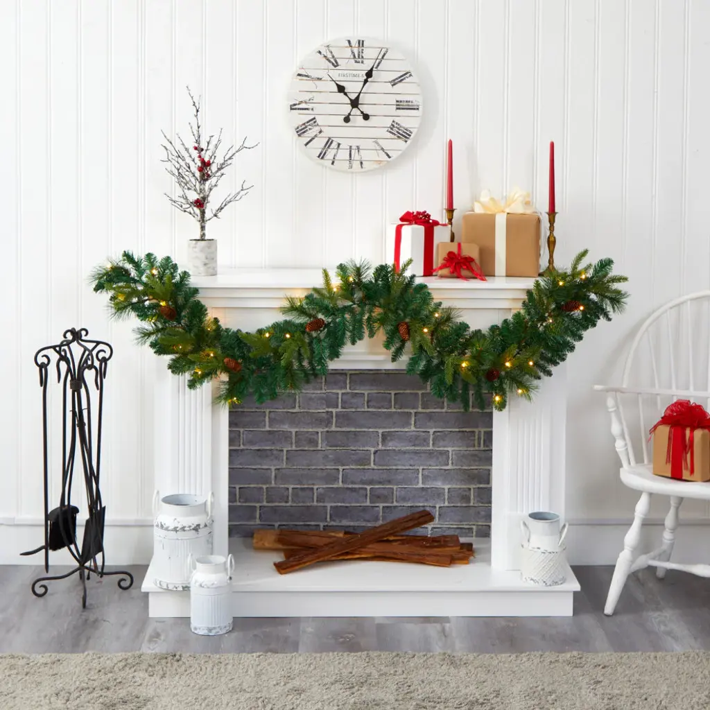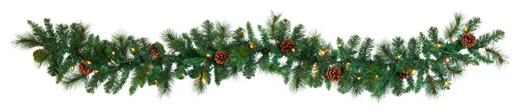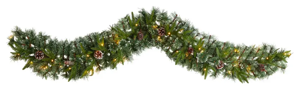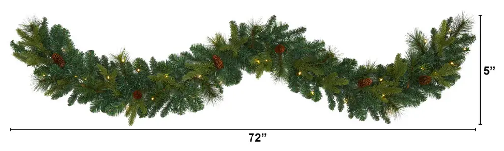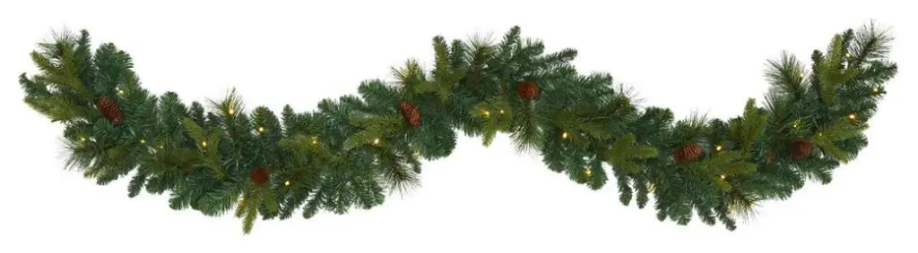 Complete your holiday decor scheme with this artificial winter garland, intricately designed from a mix of realistic looking pine foliage in a palette of seasonal evergreens, accented throughout with faux pinecones that look incredibly lifelike. Great for showcasing over a mantle, bare counter, or stair banister, this handsome 6� long artificial garland will undoubtedly complete a traditional holiday setting for years to come.