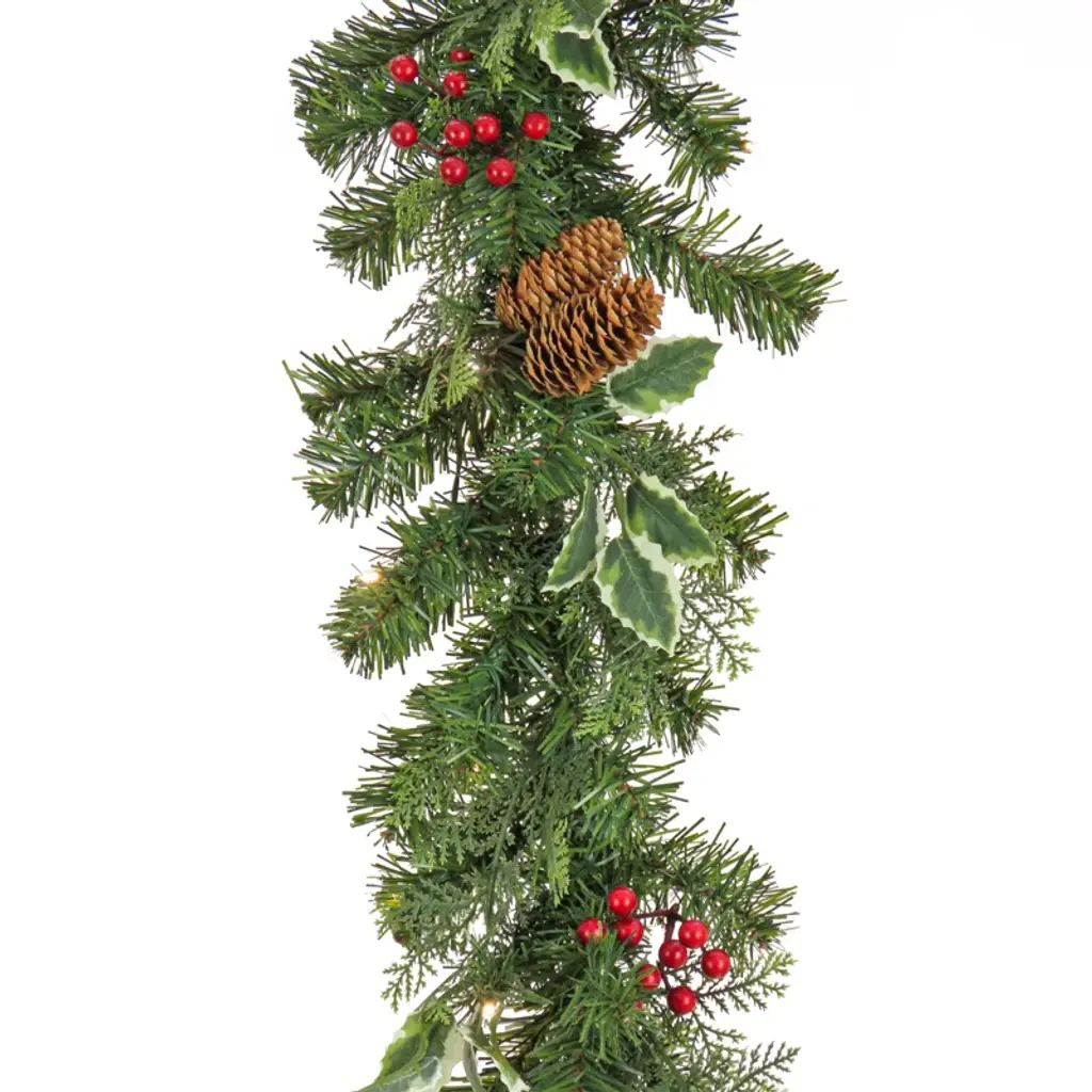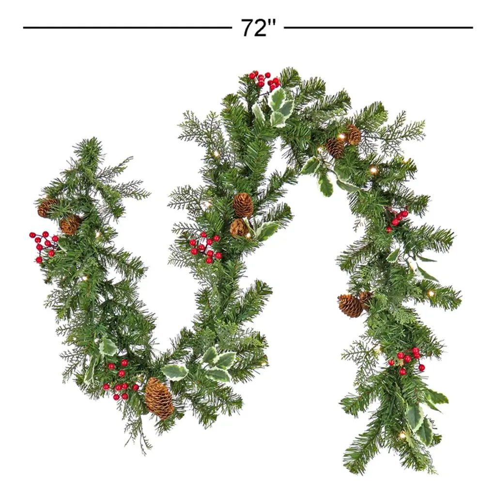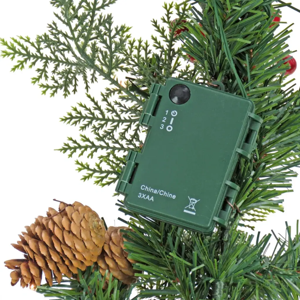 Embrace the spirit of the season with this festive, pre-lit garland. The battery-powered and timer-equipped design offers placement versatility. Illuminate your home with the warm glow of its long-lasting LED lights.