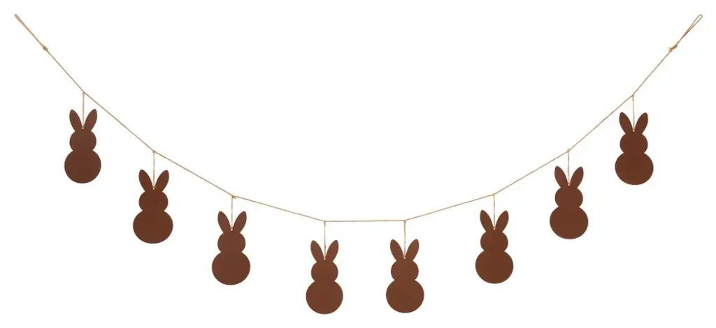 1. Decorate for the holiday season with rustic accents that keep your space festive and fun! 2. Metal Bunny Garland features a jute string with shaped bunnies. 3. Hang this garland strand on your mantel, or place it as part of a centerpiece on a table for a fabulous, festive look!
