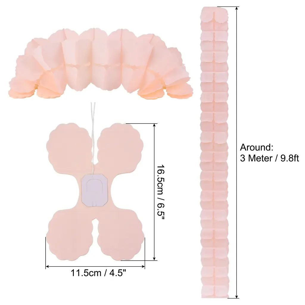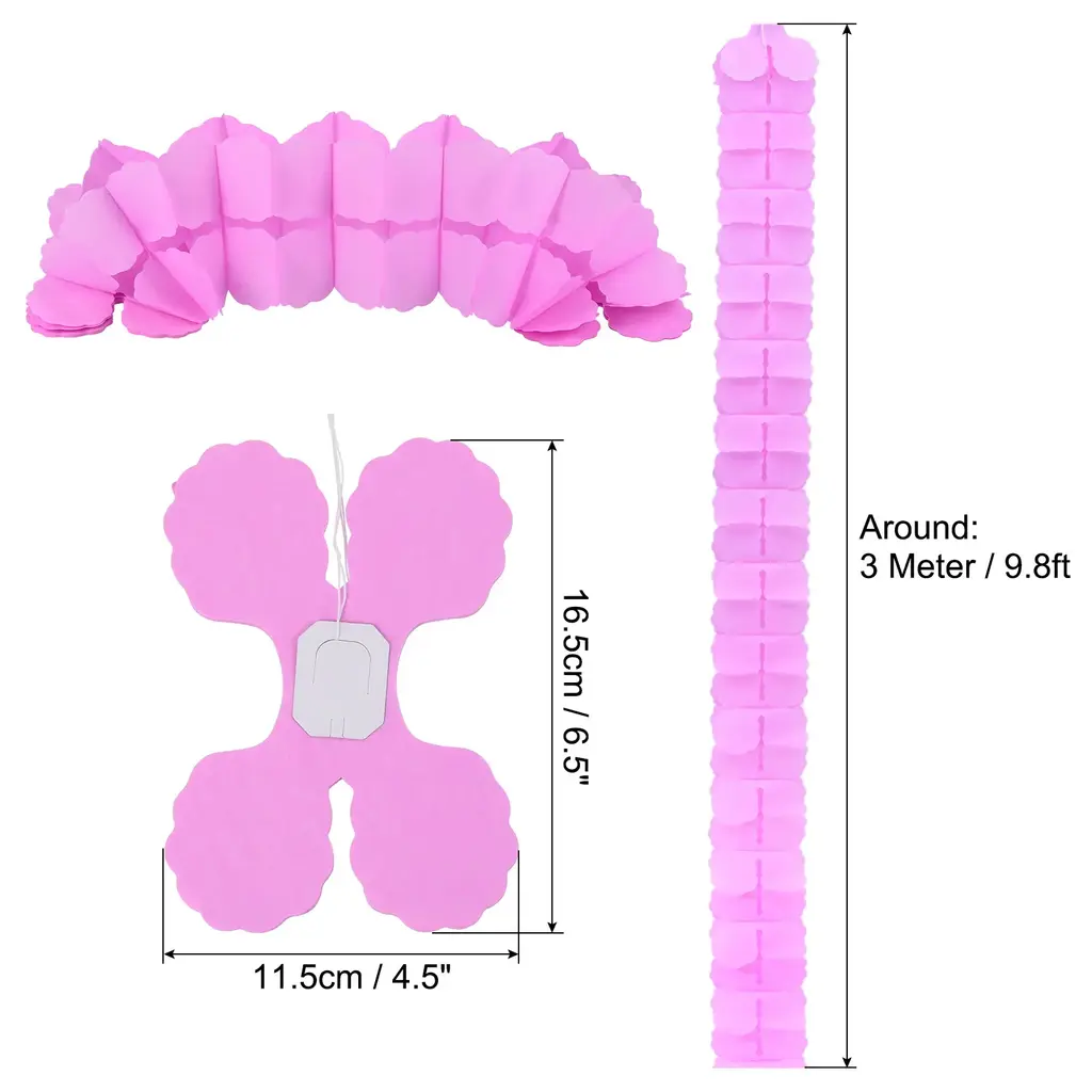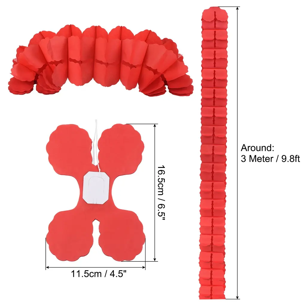 Paper flower garland is a great addition to any space decor. Perfect for weddings, birthday, graduation, festivals, party, bridal shower, special event, Valentine's day, anniversary and other occasions backdrop setting to add a romantic atmosphere.Specification Color: RedMaterial: PaperShape: Four-LeafLength (Expanded): 3 Meter / 9.8ftSize: 16.5cm x 11.5cm / 6.5" x 4.5" (L*W)Packing List: 9Pcs x Four Leaf Paper GarlandAdvantageThe 4-Leaf flower garland is made of paper with bright color and beautiful appearance. It's reusable, not easy to tear and fade, and can be quickly unfolded.InstructionUnfold the streamers and hang them on the walls, ceilings, doors, trees and anywhere you want to decorate.NOTE: Due to the difference in natural light and display resolution, the item color displayed in photos may be showing slightly different from the real object.