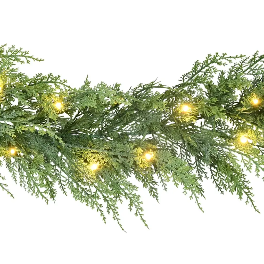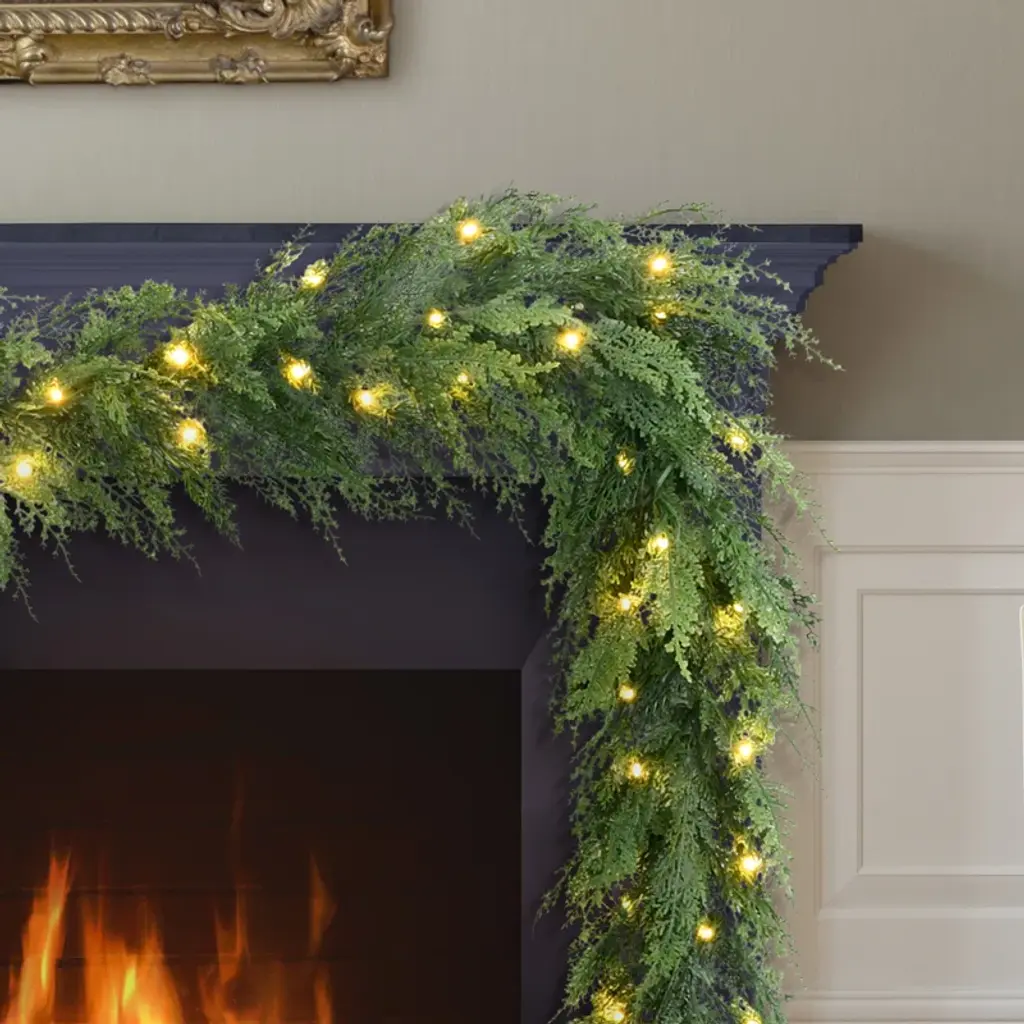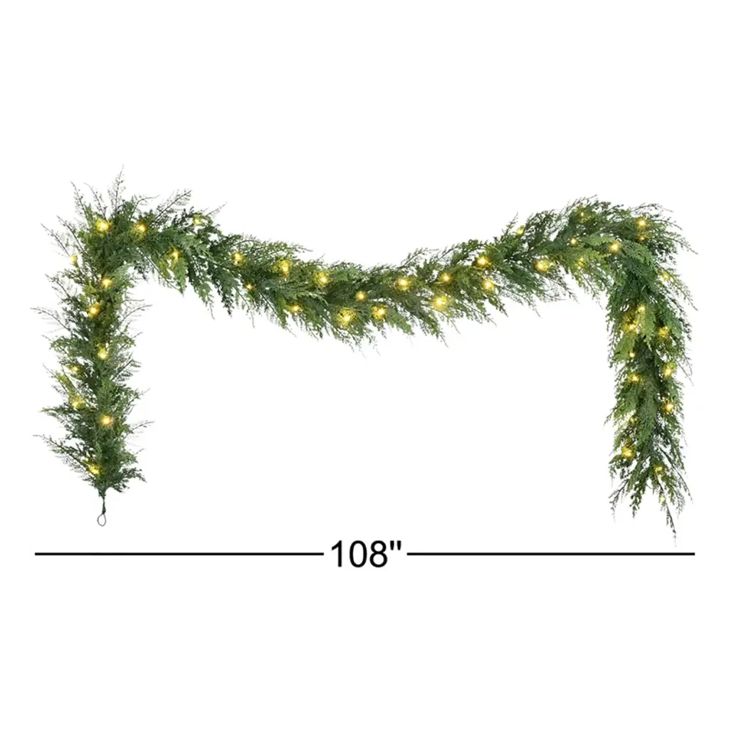 9 Feet By 10 Inches Pre-Lit Battery-Operated Cedar Garland With Twinkle Rice Lights