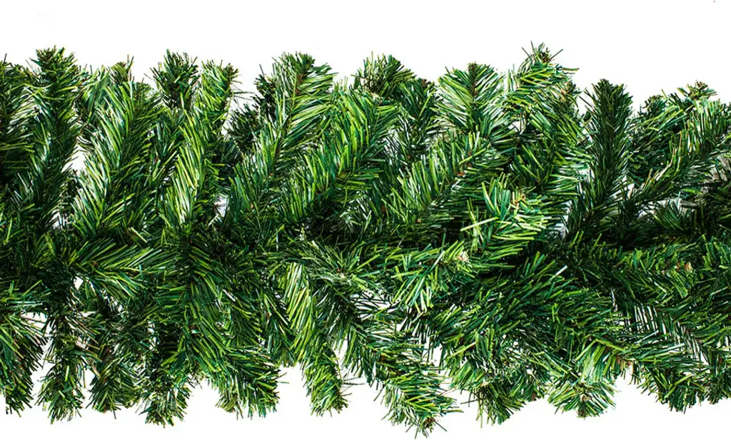 9'' Pine Garland With 200 TipsThis beautiful 9'' artificial pine garland with 200 tips is hand-crafted to give it the most realistic appearance possible. Needles are made of PVC making them flame resistant. Although it is pretty on its own, it could be stunning when you add some of our new picks, some pine cones and twigs, or your favorite color combination of ornaments. Hang from your mantle, above doorways, or adorn tables as a centerpiece.