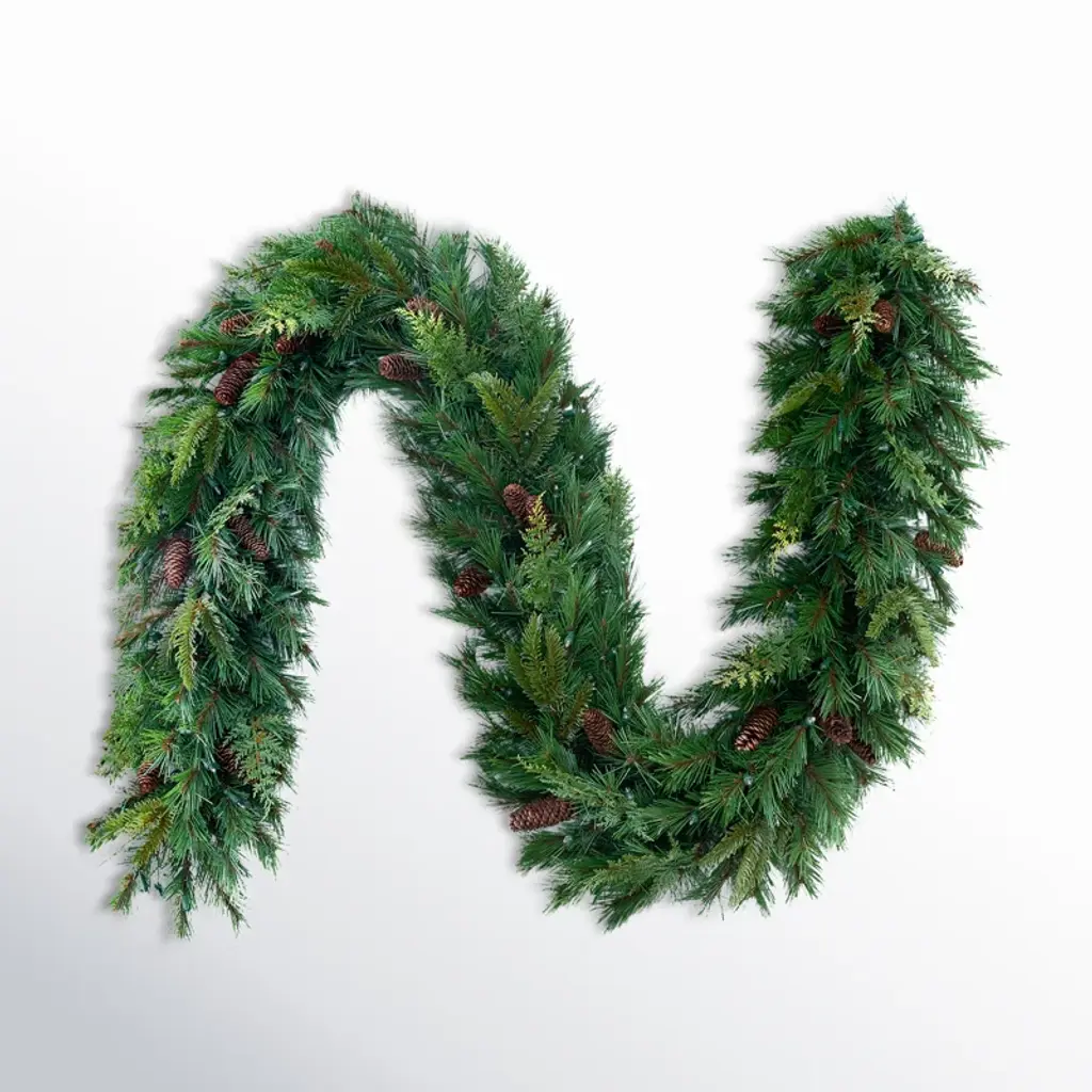 9' X 10" Noble Fir With Berries/pine Cones Artificial Christmas Garland, Unlit