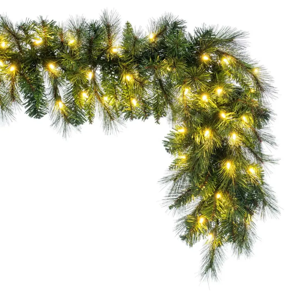 9' x 14" Brighton Pine Artificial Garland with 100 Dura-Lit® Warm White LED Mini Lights and 250 PE/PVC Tips.