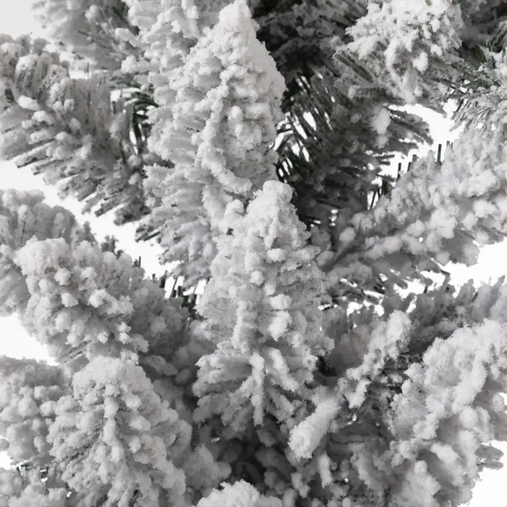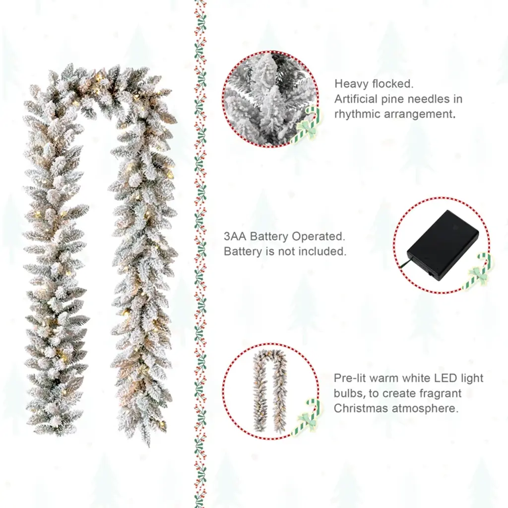 The 9-foot snow flocked garland provides ample length to easily adorn doors, mantles or banisters, making this versatile decoration ideal for any situation. Each of the 220 tips is modeled to a pine tree’s while the snow flocked design creates a winter wonderland around your home. Several large pine cones decorations among the needles add an extra holiday touch to this garland. It creating the perfect holiday touch for your home.