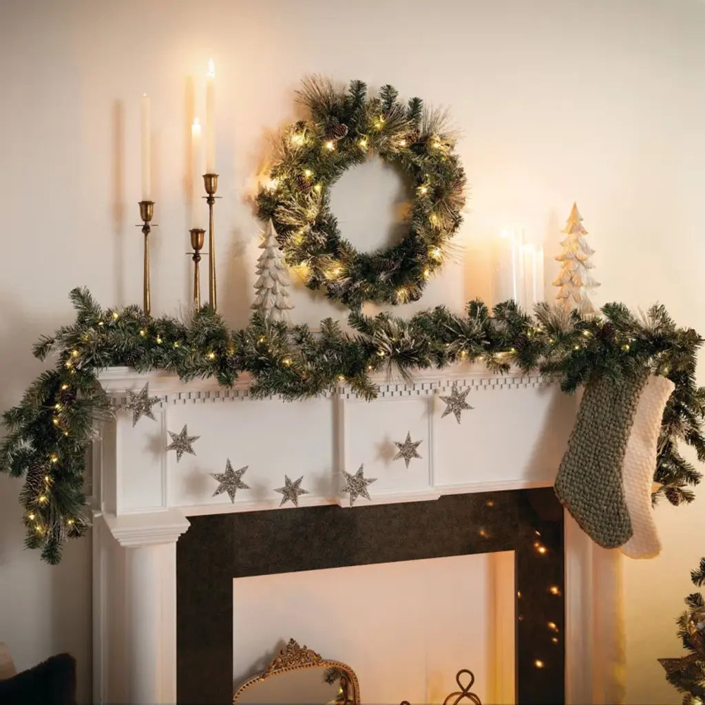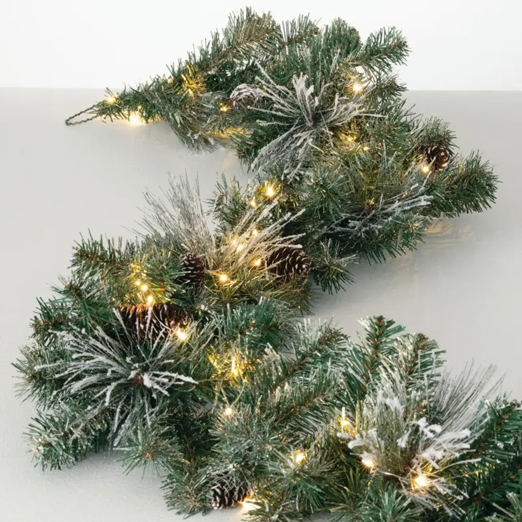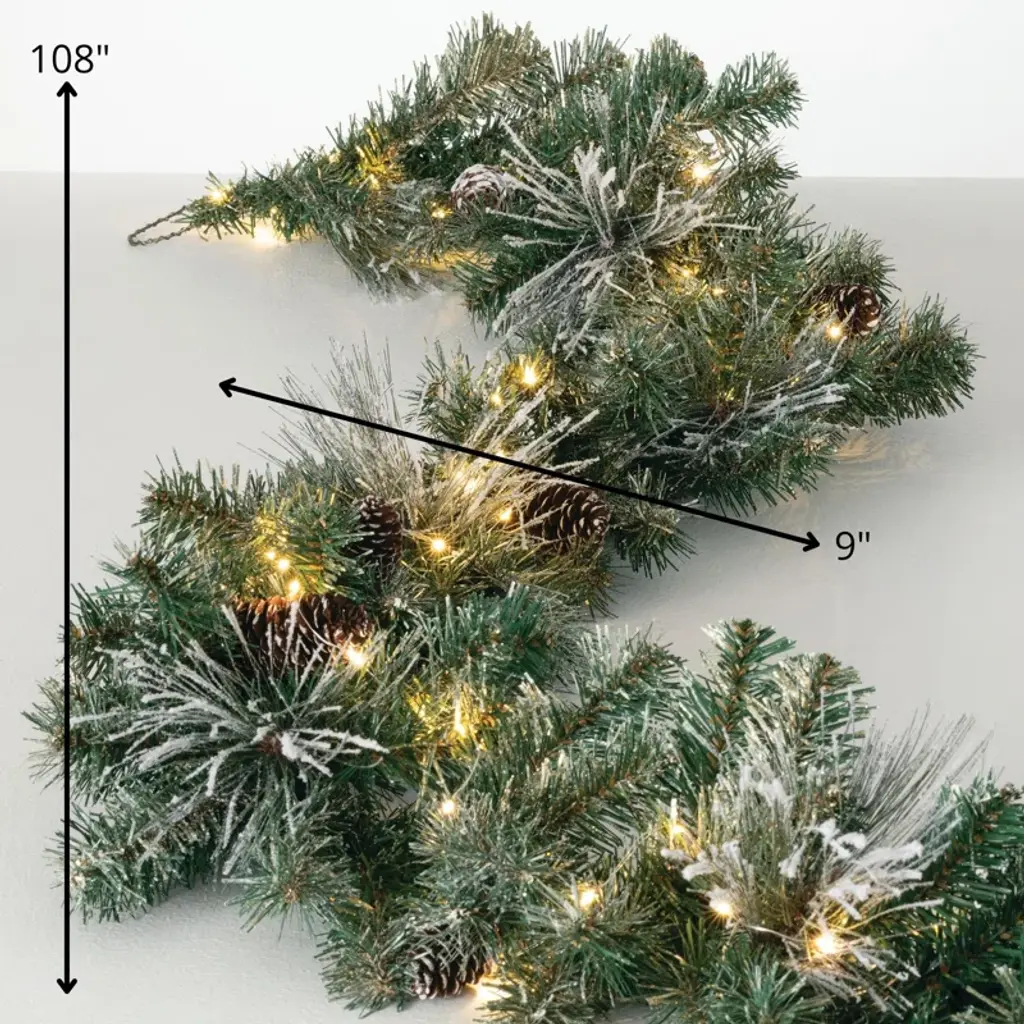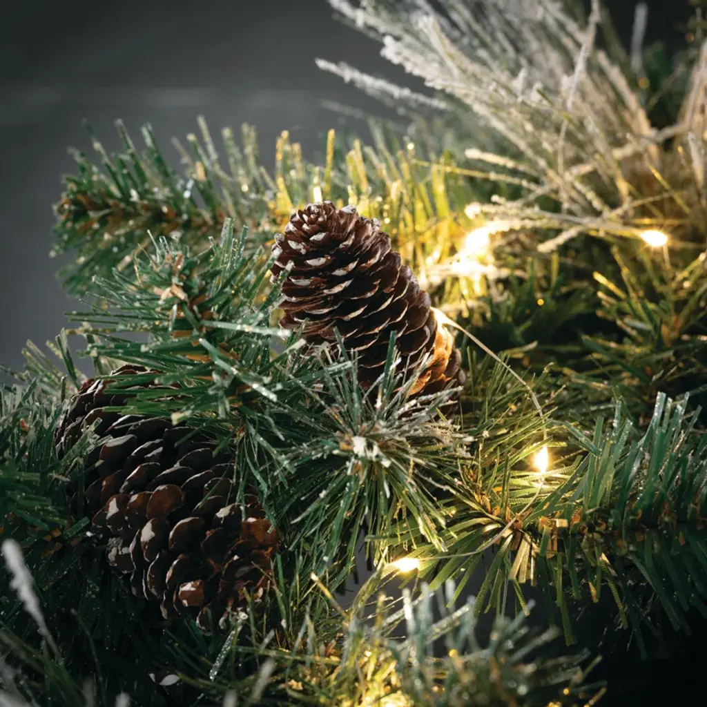 Artificial 9' Flocked Led Pine Christmas Garland With Pinecones, Green