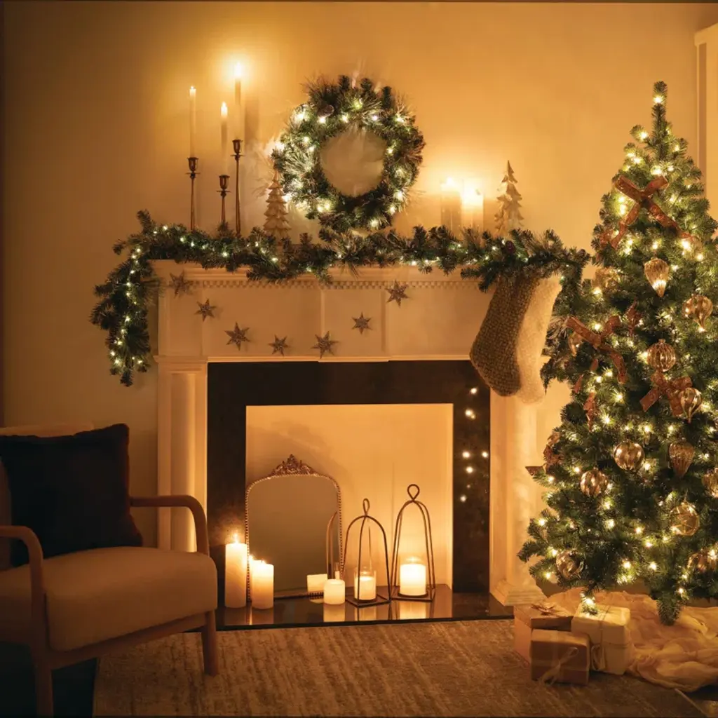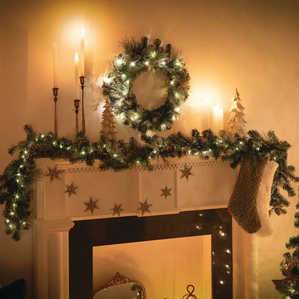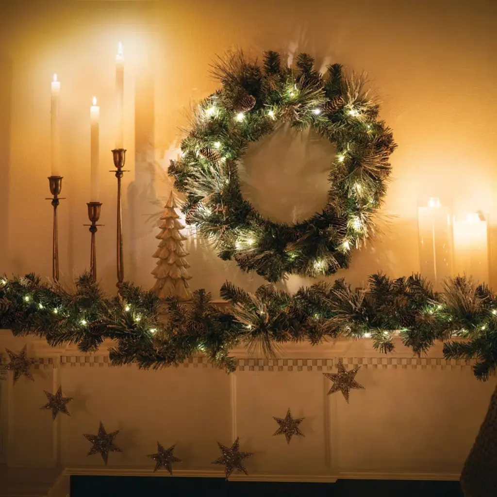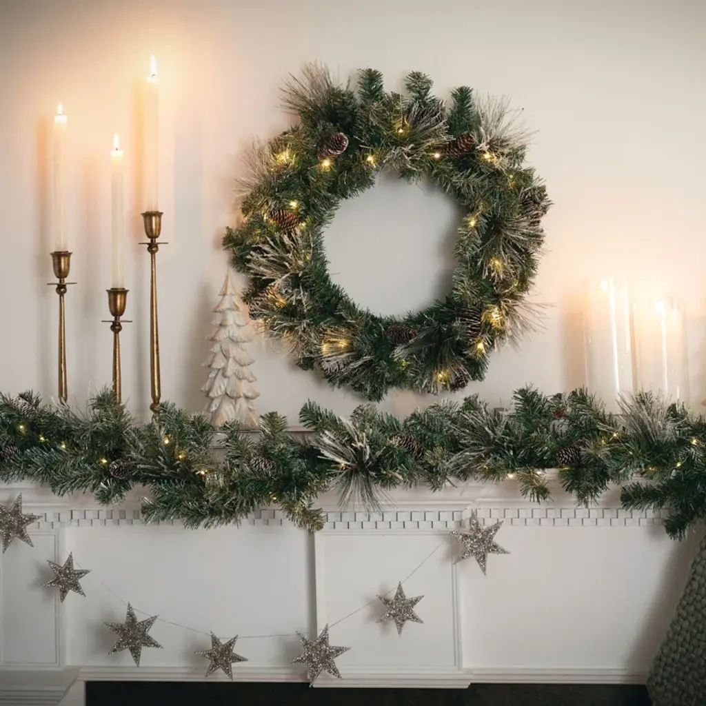 Artificial 9' Flocked Led Pine Christmas Garland With Pinecones, Green