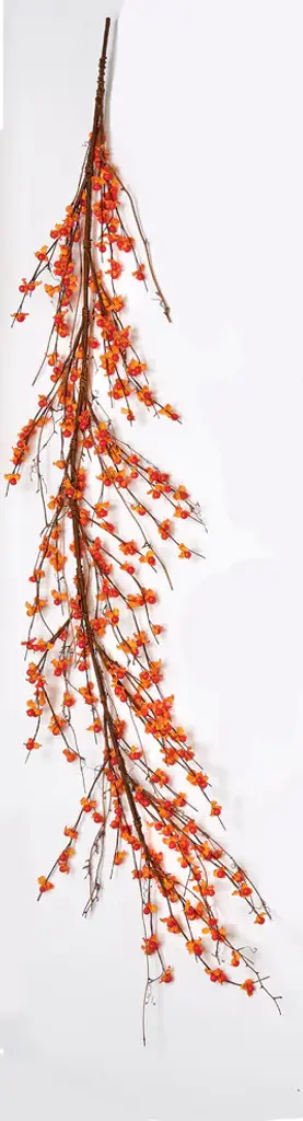 The bittersweet garland is a great addition to your fall decoration. The berry branches are wired for easy shaping and have real natural twigs interspersed throughout.Small mini leaves under each berryRealistic bitterseet