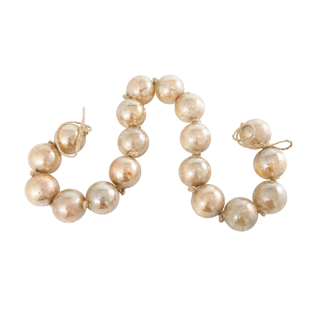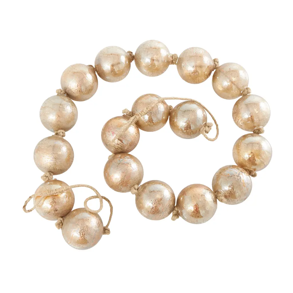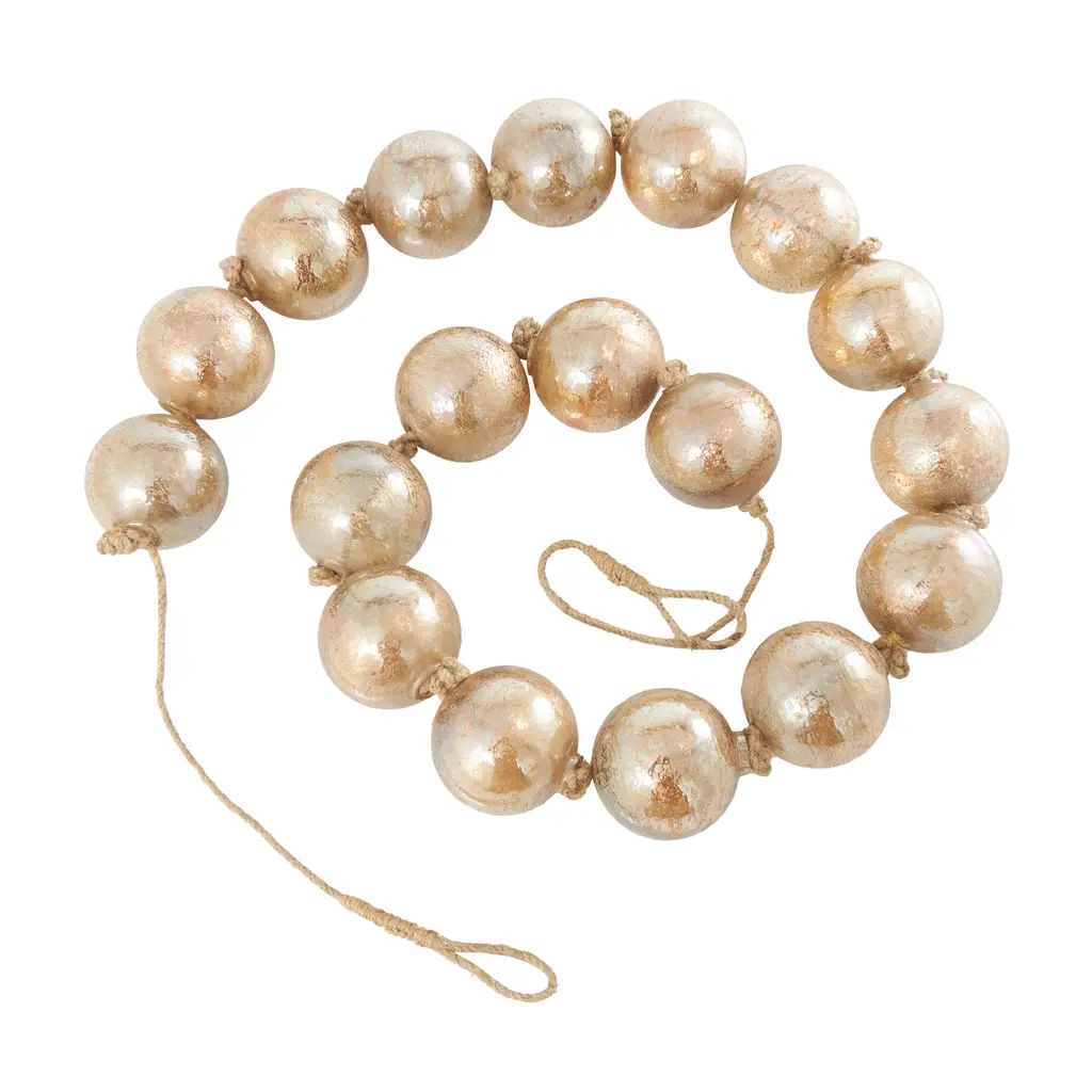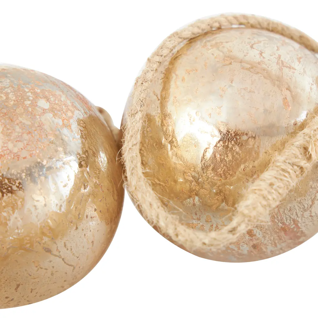 A warm and welcoming way to elevate the look of your tablescape and complement your existing decor. Give your surface space a finishing touch with these beautifully crafted decorative garland. Style this brown glass garland draped across a mantle, console, or staircase, or feature it as a centerpiece in a large bowl to create a stunning visual impact and bring texture and dimension to the home. This item ships in 1 carton. This modern glass orb garland can be used year-round or for special occasions, serving as a captivating festive decoration. Glass garland with tassel makes a great gift for any occasion. Due to the handmade nature of these, there will be slight color, shape, and size variations, as well as loose fibers. Suitable for indoor use only. This item ships fully assembled in one piece. Made in India. This is a single brown colored large beads with tassel. Coastal style.