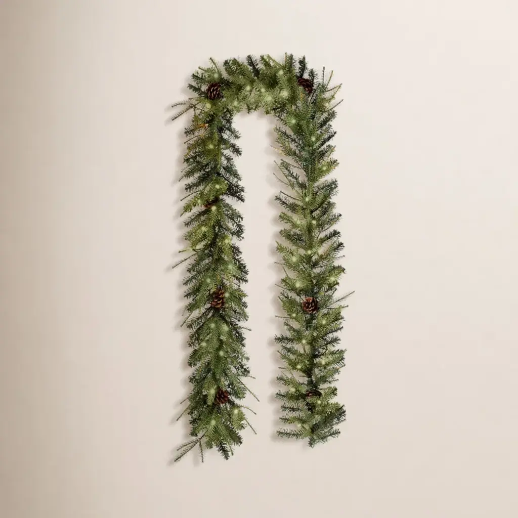 Features 2" wide needles with perfectly shaped tapered tips that are a medium two-tone green color and have a natural lush look and feelProduct Features:Unlit1332 tipsFor indoor or outdoor useCommercial lengthBendable wire center allows for you to shape the garland any way you desireGreen metal hooks on each end for easy hangingDimensions: 50'' long x 12" wideMaterial(s): PVC/metal