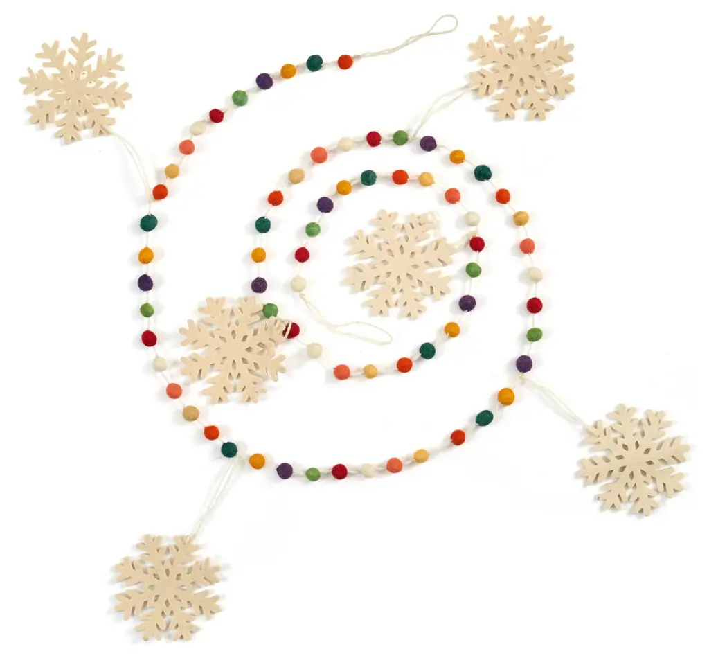 Candy Colored Dots Garland With White Snowflakes, In Hand Felted Wool