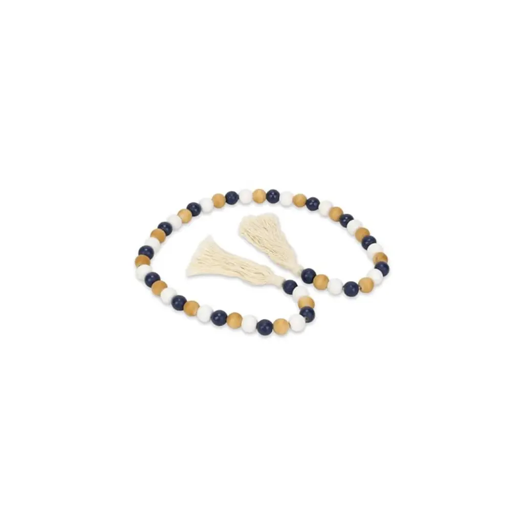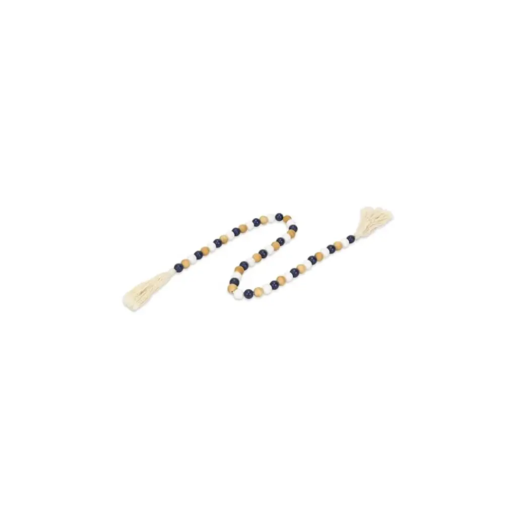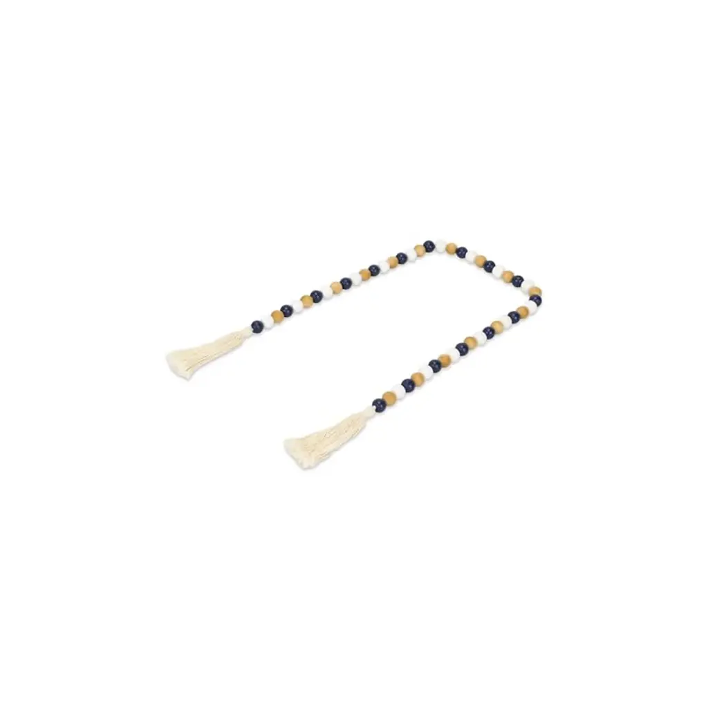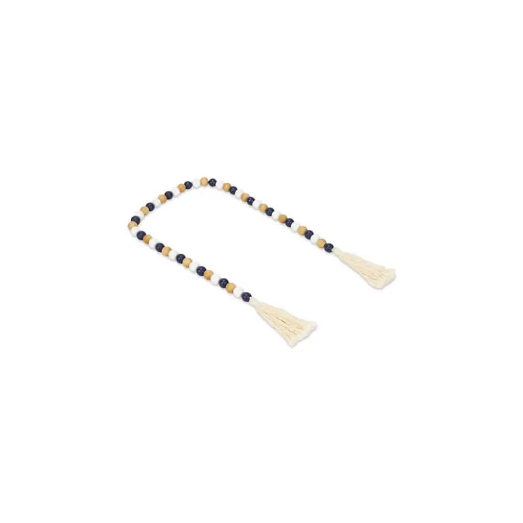 An entirely handmade and hand crafted design.Fully assembled and ready for use, simply unbox and use!This piece features a stylish and functional blend of wood and rope materials.Made to be a decorative tassel, perfect alone or inside and alongside display vessels.Made with a color trio of blue, brown, and white beads