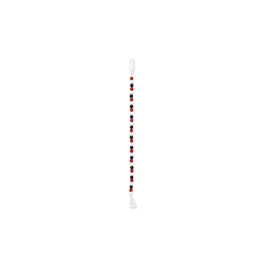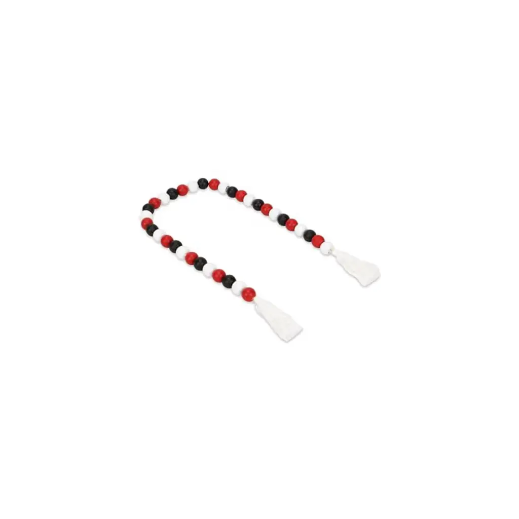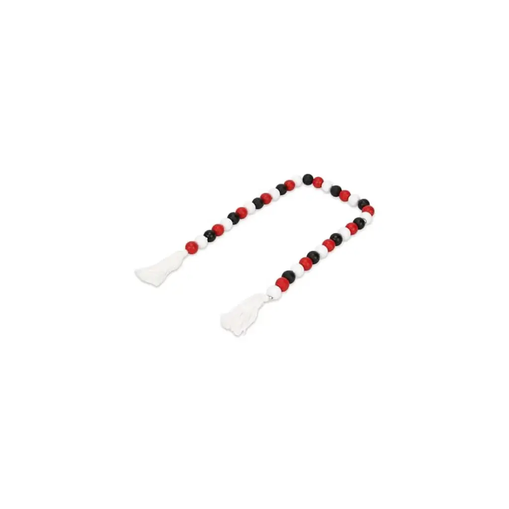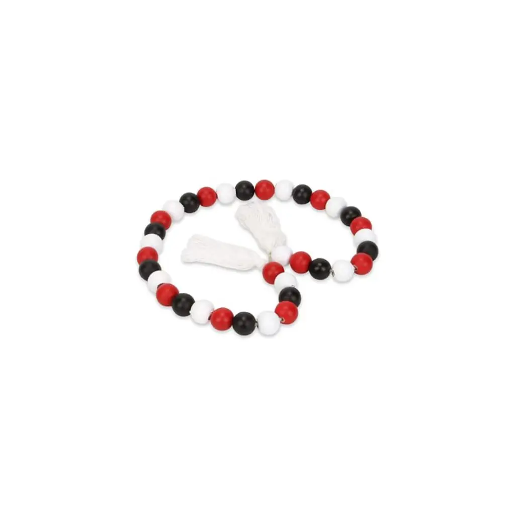 An entirely handmade and hand crafted design.Fully assembled and ready for use, simply unbox and use!This piece features a stylish and functional blend of wood and rope materials.Made to be a decorative tassel, perfect alone or inside and alongside display vessels.Made with a color trio of red, black, and white beads