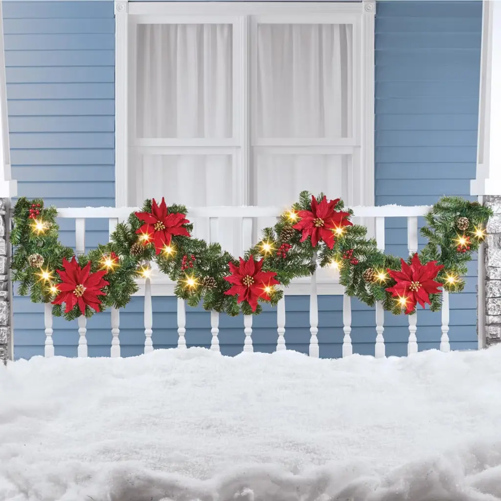 Collections Etc Solar Powered 9-foot Poinsettia Garland