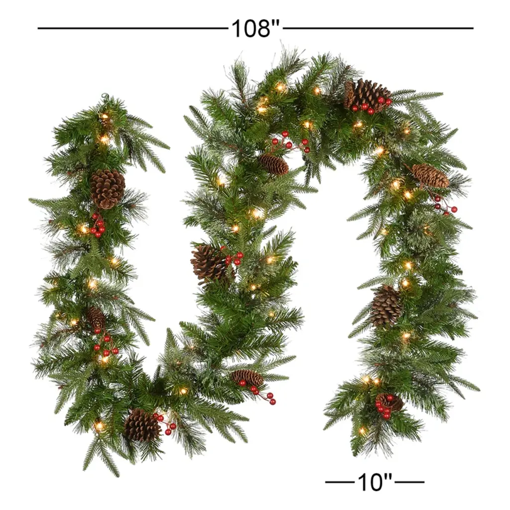Colonial 9' Pre-Lit Garland With 50 Clear & White Lights