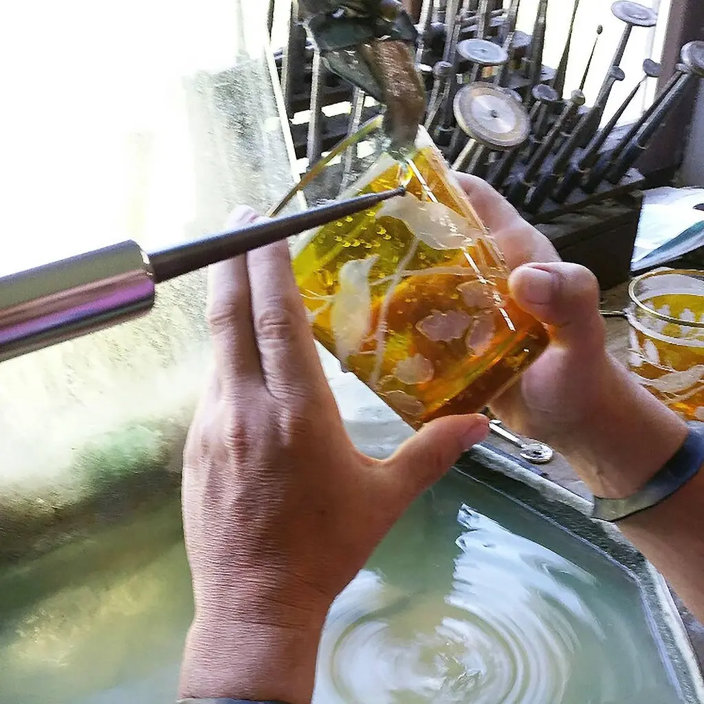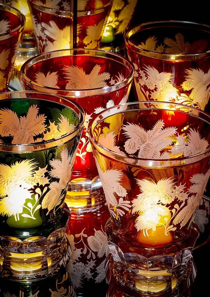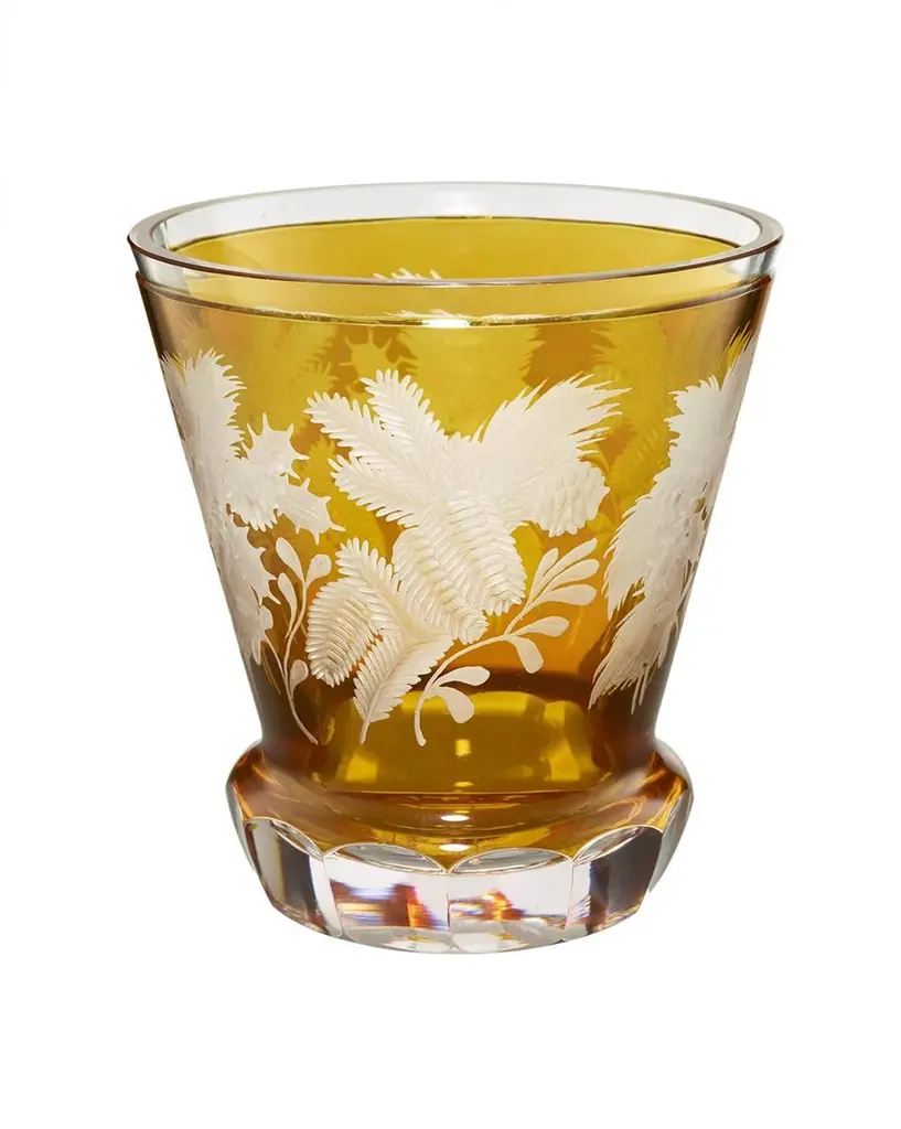 Hand blown crystal vase/latern in dark green. Hand carved by Bavarian glass artists with Christmas decor. A rich garland of fir and pine scones decorates this crystal vessel. Can also be used with a candle as laterne. Completely handmade in Bavaria/Germany by Sofina Crystal. Sofina glass and Porcelain was found 2013 in Bavaria and lies a reversion to long-established craftsmanship, quality and uniqueness. All Sofina items are hand blown and hand carved in Bavaria/Germany in the tradition of the 18th century. Comes in three colors red, green and gold.