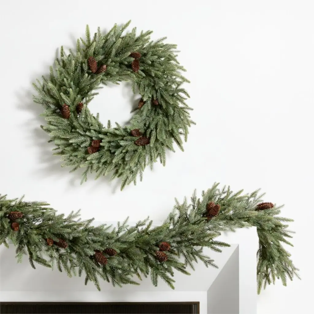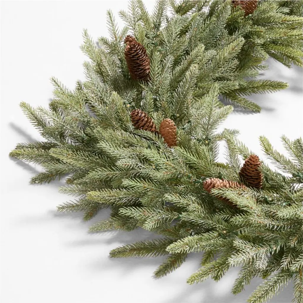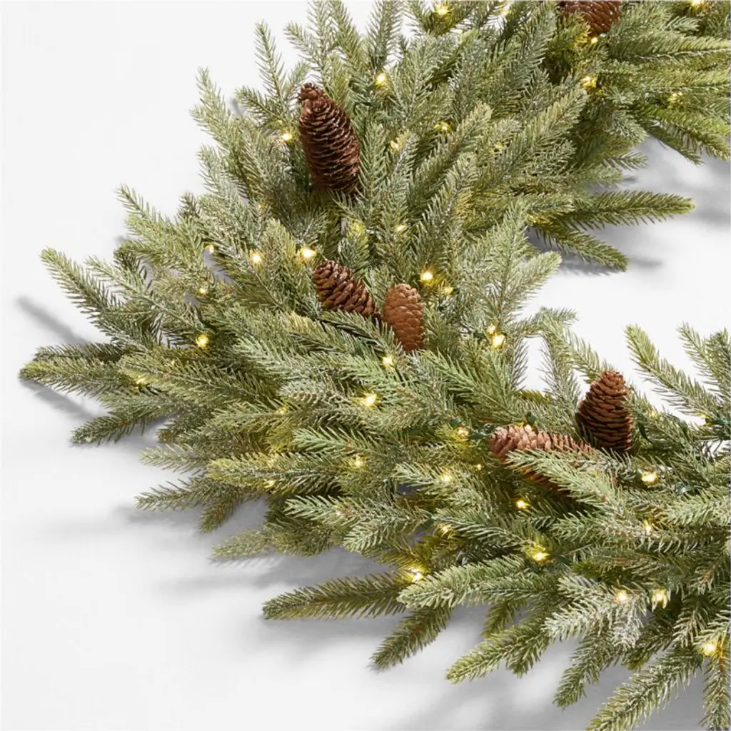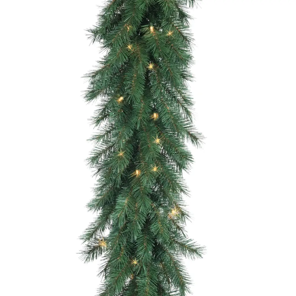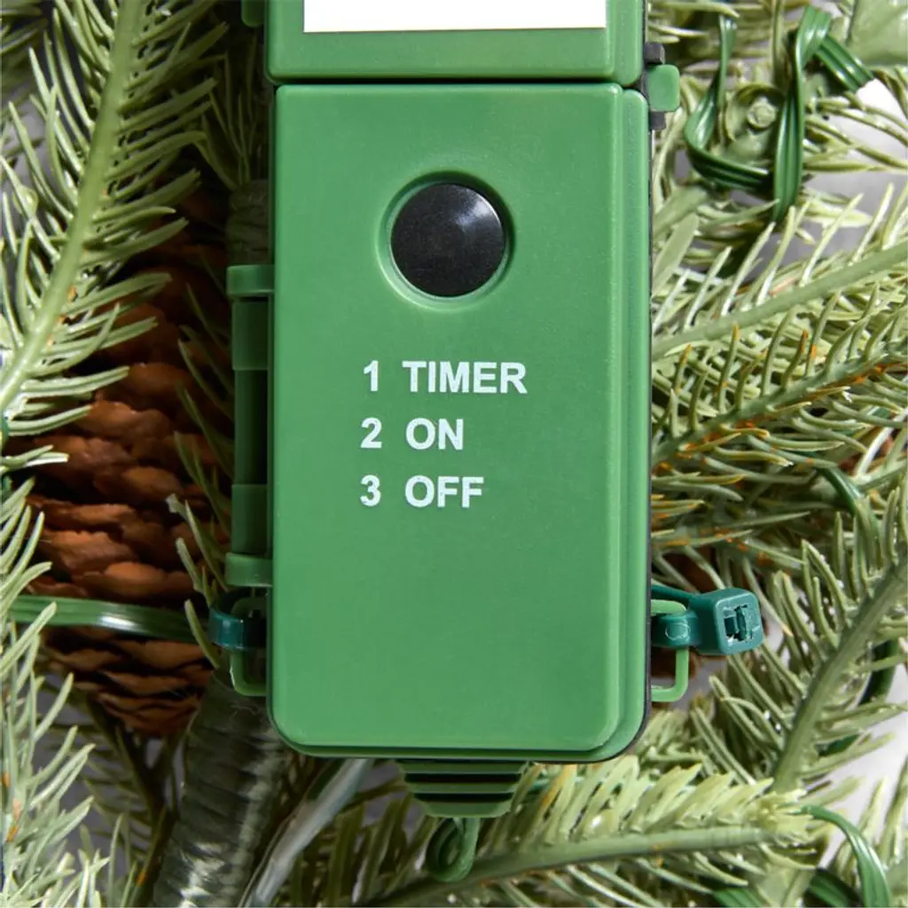 Drape your doorway, fireplace mantel or buffet in the distinctive beauty of the Norway spruce. Our garland recreates the dark green foliagestiff leaves that only resemble pine needlesof the Norwegian botanical, with bendable branchlets that can be adjusted for the most lifelike look. Real pine cones add a natural touch, while starry warm white lights illuminate the garland and your winter decor. Switch on the battery-powered swag or use the timer and watch it shine throughout the night.