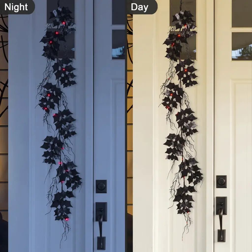 This bat garland is the perfect way to add spooky to your Halloween. Enjoy the creepy bats all day and add a pop of light at night. Great for your door, mantel, or part of your holiday buffet.