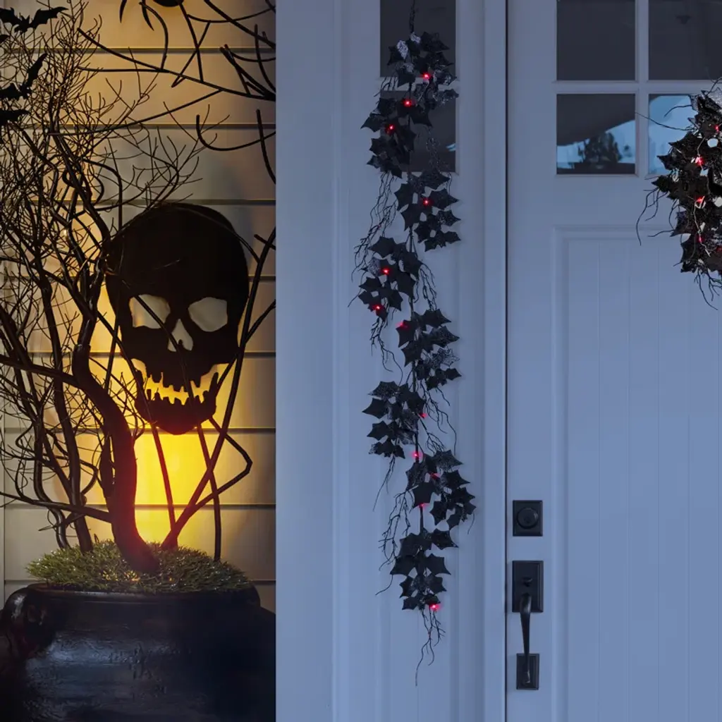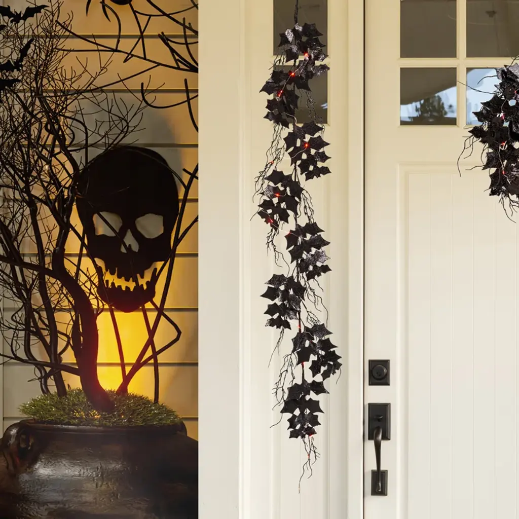This bat garland is the perfect way to add spooky to your Halloween. Enjoy the creepy bats all day and add a pop of light at night. Great for your door, mantel, or part of your holiday buffet.
