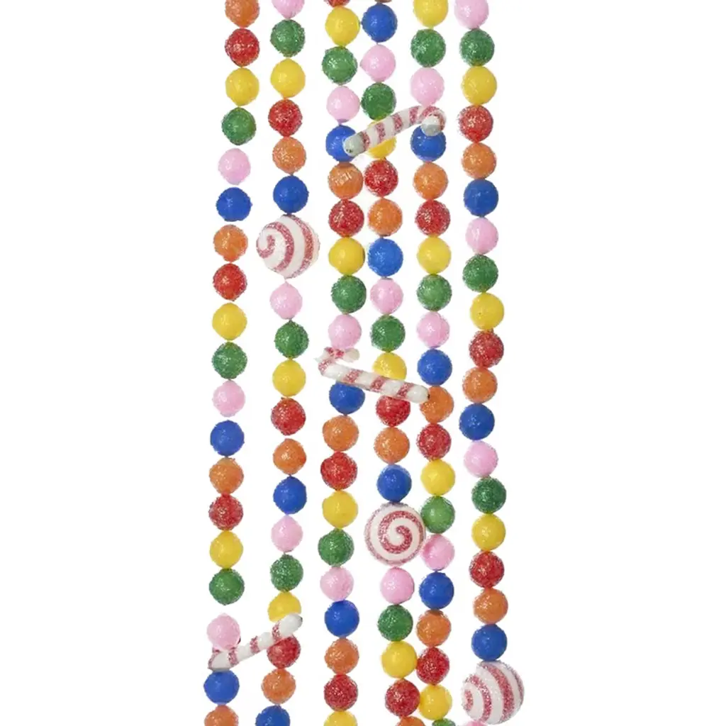 Have some sweet fun with your holiday decor with Kurt Adler�s Candy Cane and Candy Ball Garland! This garland has small round, multi-colored gum drop-like beads, with larger red and white peppermint and candy cane pieces arranged throughout. Measuring 6-feet in length, this garland is ideal for decorating Christmas trees, mantels, staircases, or table centerpieces. Made from durable plastic and metal, this garland is built to last and can be reused year after year. Indoor use only.