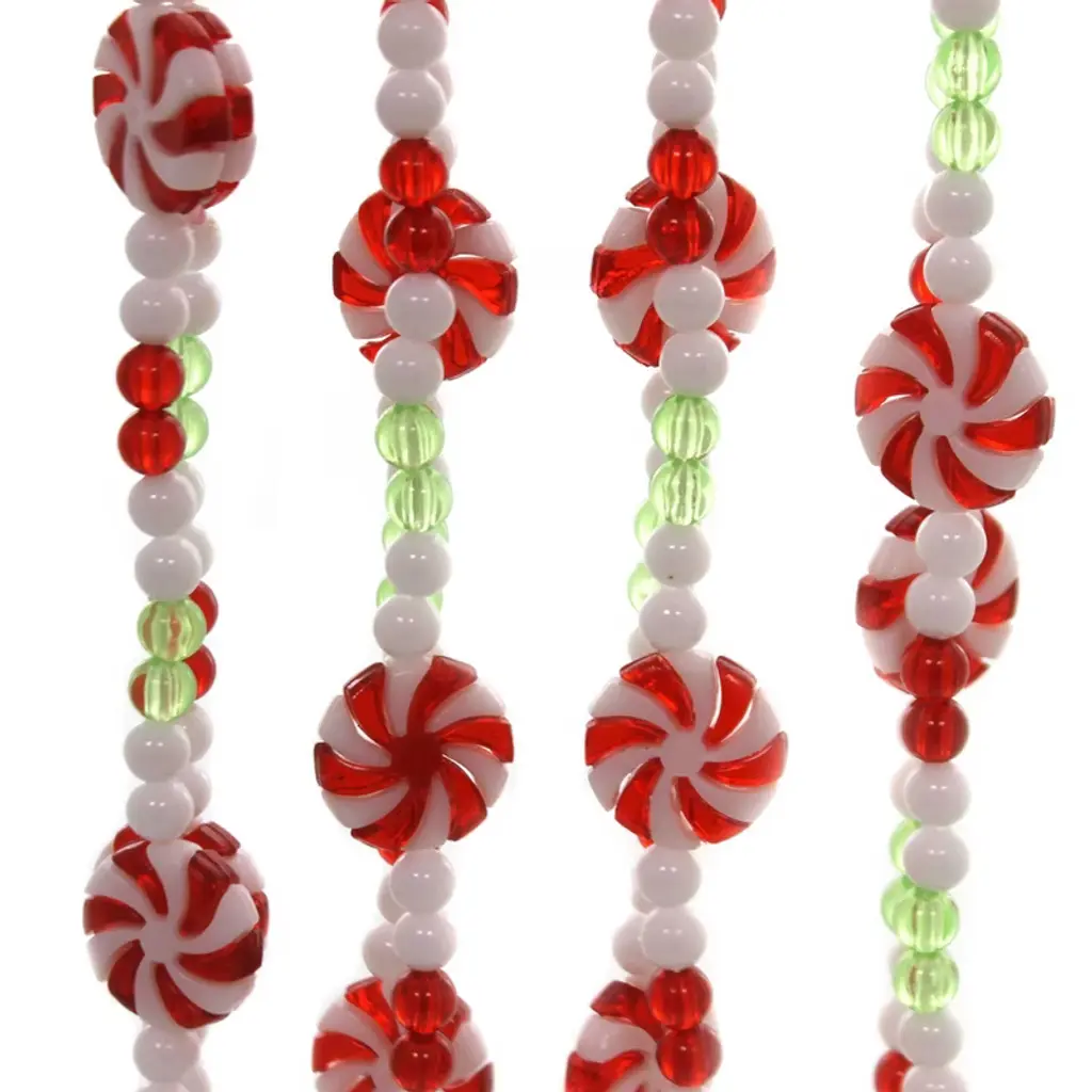Christmas Red Green White Candy Garland Plastic Decorative Measures Approximately 108 In H X 0.75 In W X 0.25 In D (HxWxD).