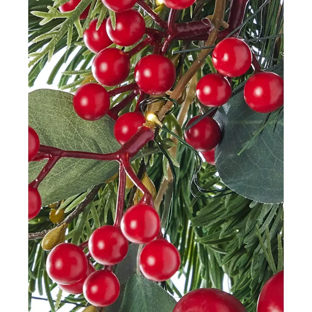 Make your holiday decorating effortless with our exquisite Magnolia Leaf, Eucalyptus, and Berry Collection. Each carefully curated piece comes pre-lit with delicate fairy lights, battery operated for effortless placement anywhere in your home. Bring a touch of magical ambiance to your décor with this captivating collection, blending timeless sophistication with modern convenience