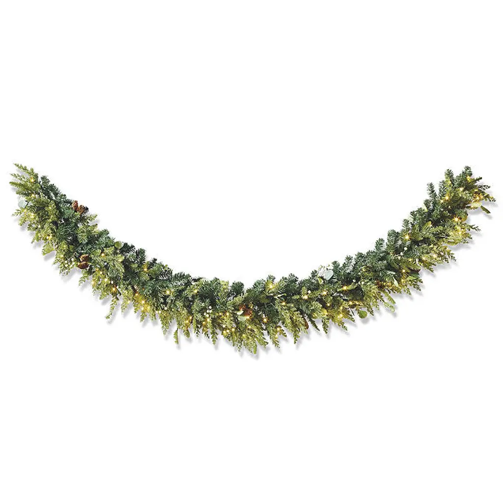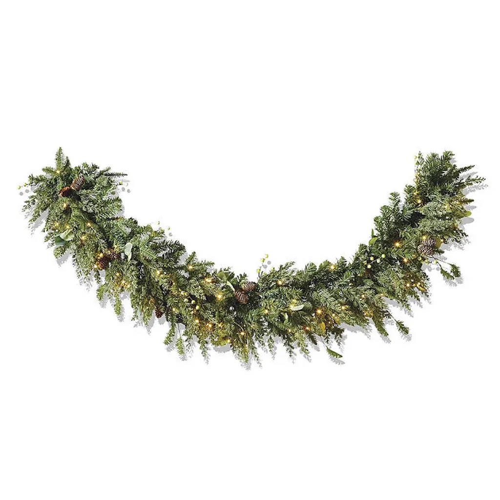 Vibrant faux green berries and delicate eucalyptus leaves enhance the lush realism of the Majestic Holiday Outdoor Cordless Garland. This stunning arrangement perfectly captures the rich tones and textures of spruce, eucalyptus, juniper greenery, green berries and lifelike pine cones. It's nearly indistinguishable from fresh-cut foliage, yet its beauty will last for seasons to come. For indoor or covered outdoor use Polyethylene, PVC, wire and lifelike pine cones 6 ft.: 120 warm-white short-tip LED lights 9 ft.: 160 warm-white short-tip LED lights 6 ft.: 215 tips of greenery 9 ft.: 325 tips of greenery Requires three D batteries (not included) Fluff and shape greenery after unpacking To maximize the life of your greenery, we recommend a limit of 3 months of outdoor exposure per year Wipe clean with a soft, dry cloth or duster Imported Protect your banister with our Banister Savers A Frontgate exclusive. At Frontgate, our primary focus is quality. We guarantee that every product we sell will stand up to the supreme test – our customers' satisfaction. To learn more about our policies, visit our Shipping & Processing, Returns & Exchanges and Warranty & Price Guarantee pages.