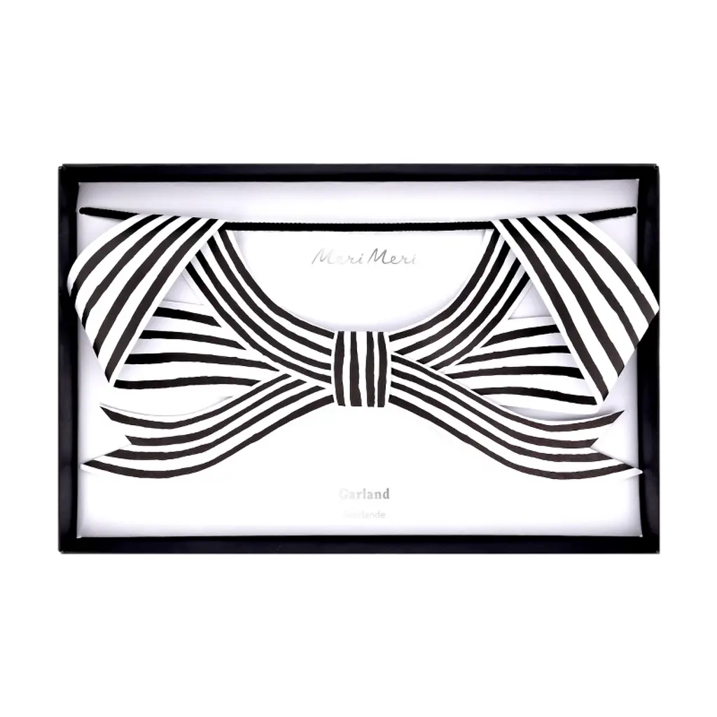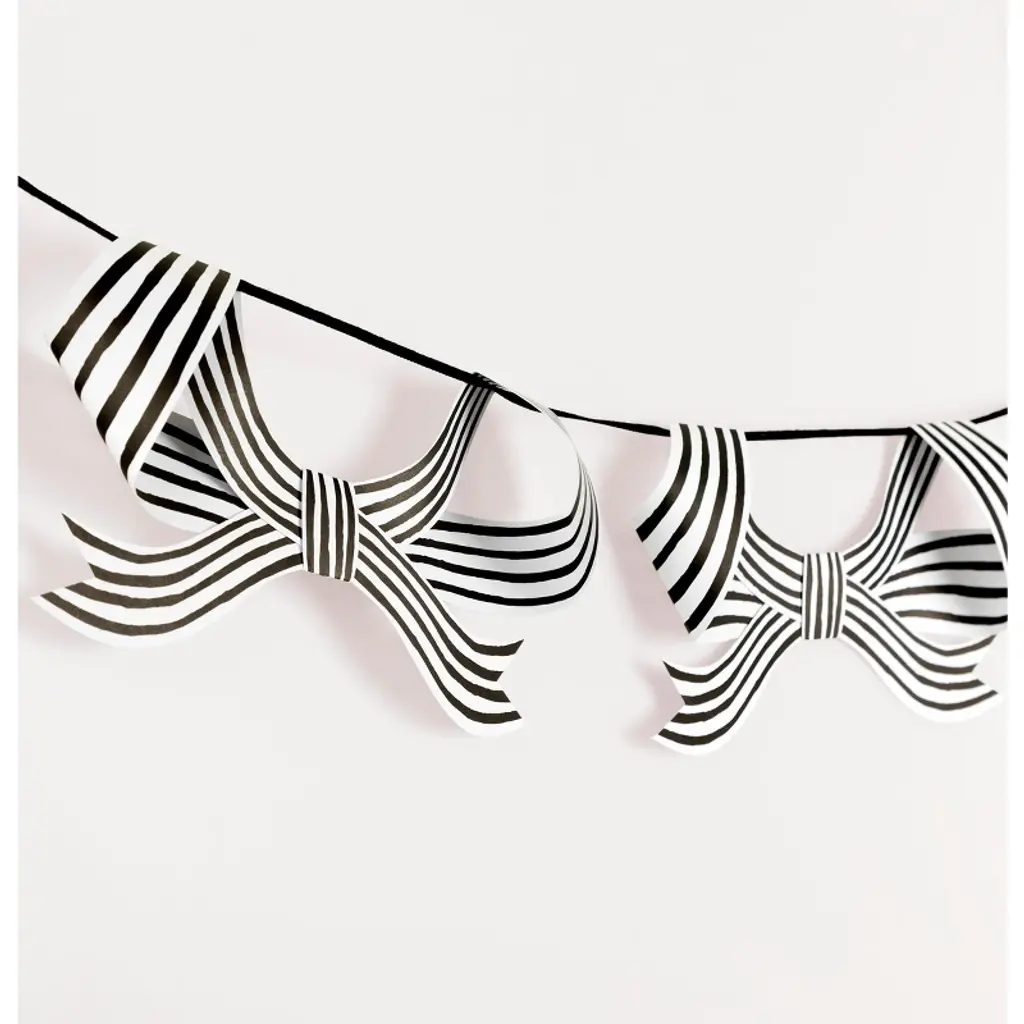 Meri Meri Black & White Stripy Bow Garland (12' With Excess Cord - Pack Of 1)