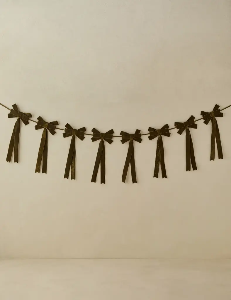 This paper garland with sophisticated bow pennants is a must have for a chic Halloween celebration, bringing together classic style with a modern twist. Featuring bold black and white stripes paired with a soft black velvet ribbon it adds a striking touch to any setting indoors or outdoors. Perfect for draping across the party table or mantel, hanging in the porch or windows, or swaying gently from trees, this Halloween garland elevates your Halloween room decor with effortless elegance.
