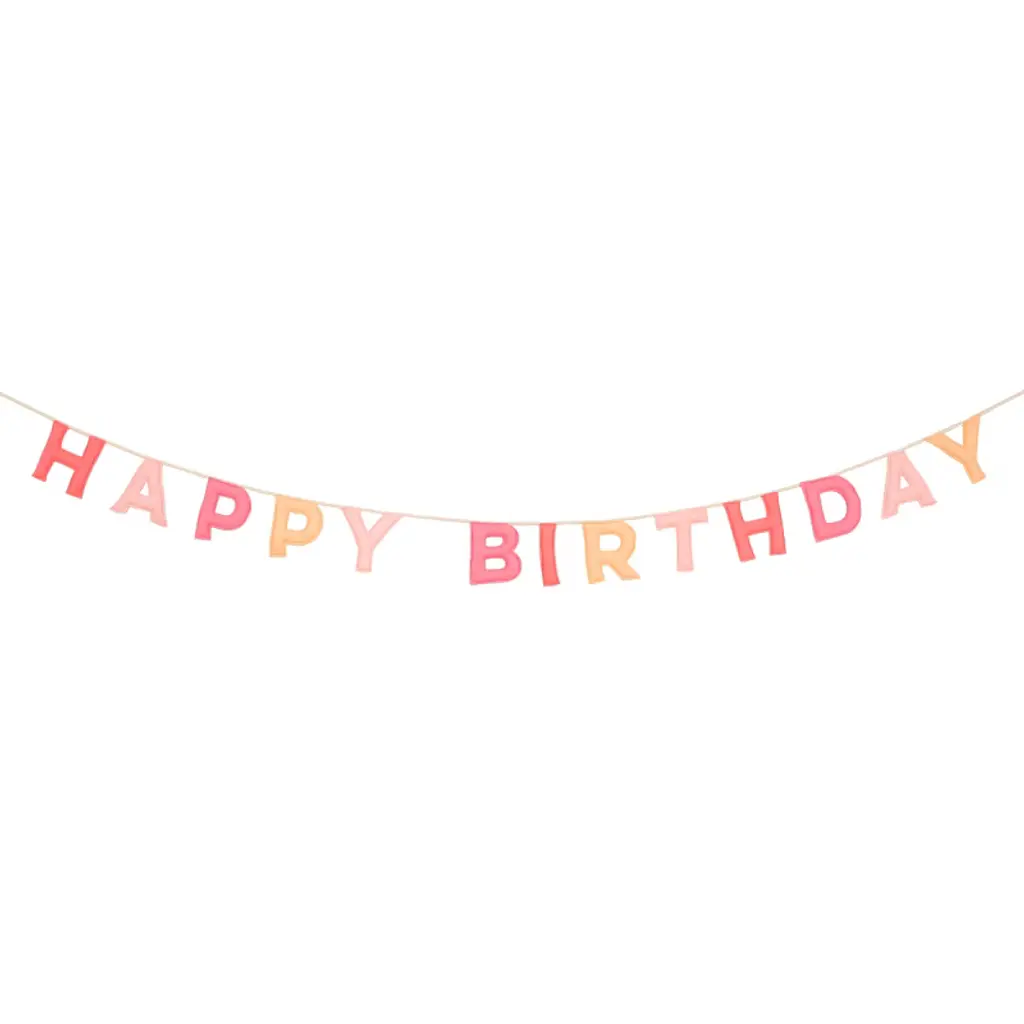 Meri Meri Pink Happy Birthday Felt Garland (10' With Excess Cord - Pack Of 1)