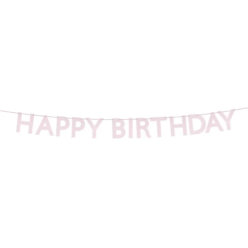 Add a soft, pastel pop of pink to your birthday celebration with this charming paper garland. Featuring the words "Happy Birthday" in pink letters with delicate scalloped details, this garland is the perfect addition to your happy birthday decorations. Whether draped across a doorway, hung along a mantel or in a window, or styled above your party table, the garland features pink and white baker's twine for hanging, creating a stunning focal point that's both stylish and simple.