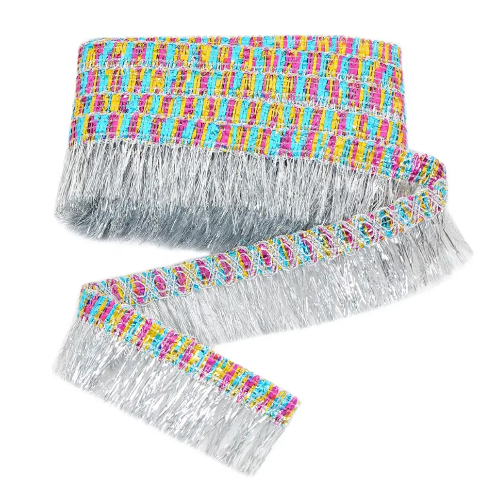 Want to give a celebration as much shimmer and sparkle as possible? Then you'll love this rather special silver and iridescent tinsel garland. Simply hang up for instant style. 2 layer tinsel fringe. Silver ribbon ties. Iridescent & silver metallic thread detail. Pack dimensions: 7 x 10 x 1 inches Product length: 6 feet