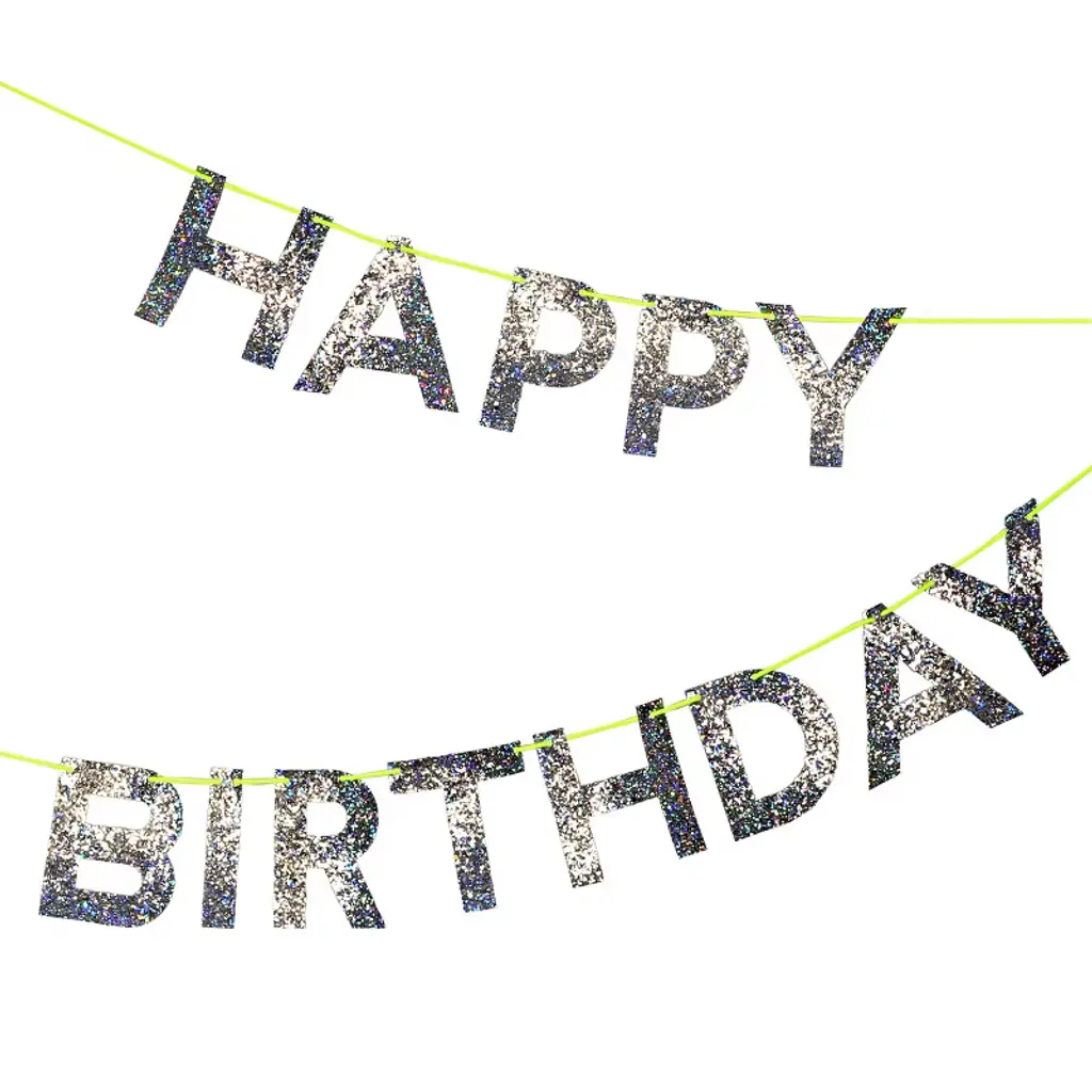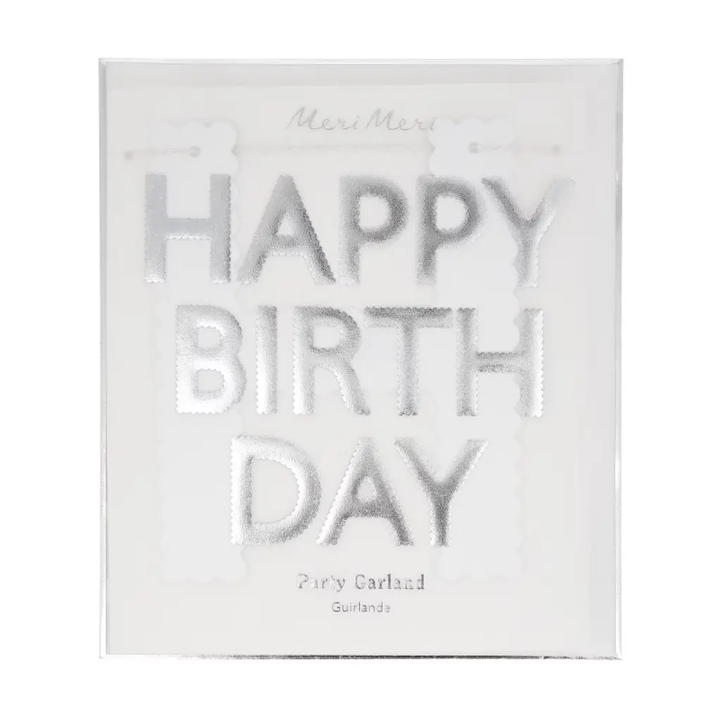 Add a special glow to your celebration with this dazzling silver garland, designed to make any birthday feel extra special. Featuring shiny silver foiled letters with elegant scalloped edges, this silver happy birthday banner is a stylish take on classic happy birthday decorations. This garland adds just the right amount of shimmer and charm, elevating your silver birthday party decorations with a modern twist.