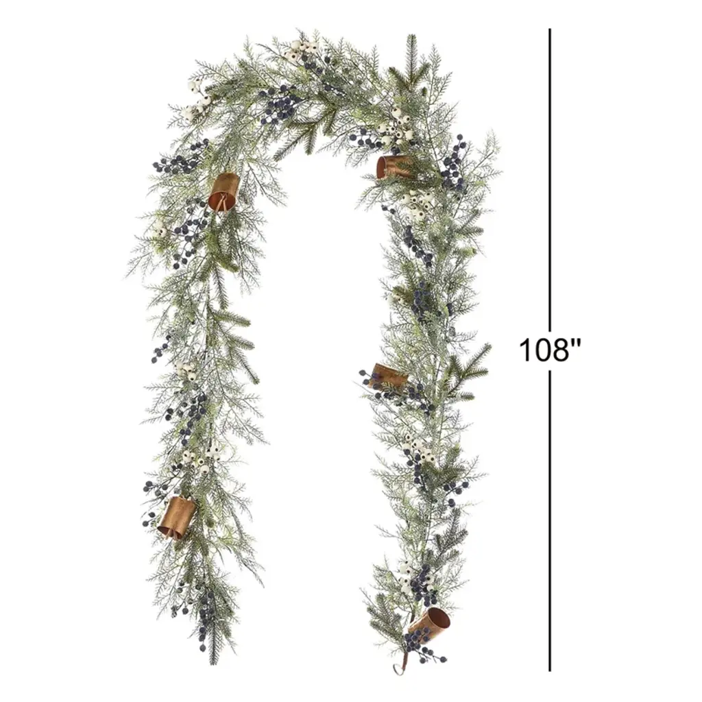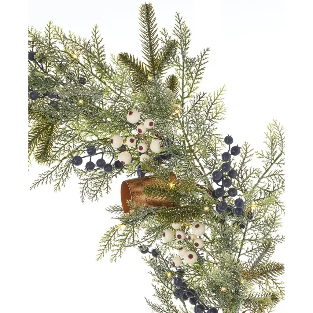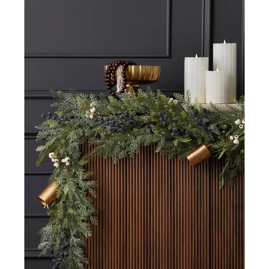 Mixed Mica Foliage With Blueberries And Harmony Bells 9Ft Garland Pre-Lit Fairy Lights B/o