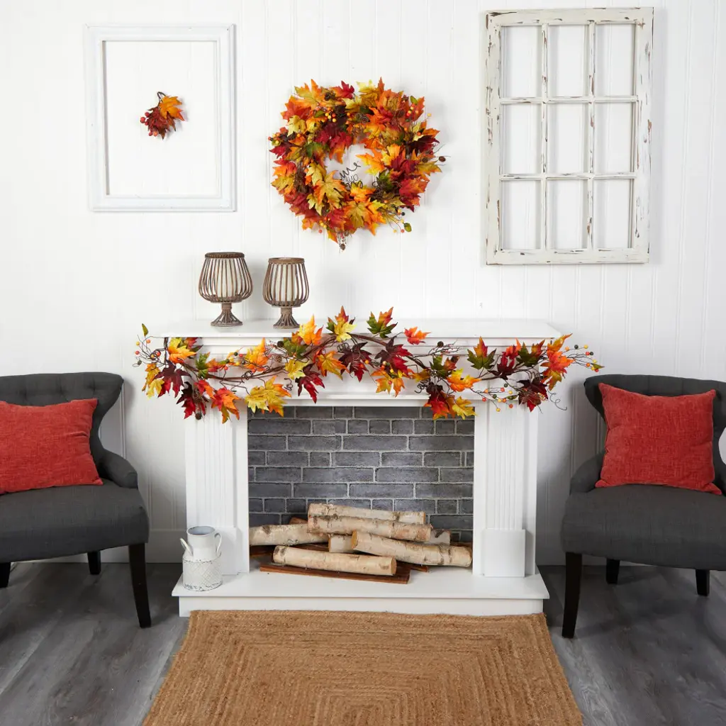 Nearly Natural W1257 6 Autumn Maple Leaf And Berry Fall Garland