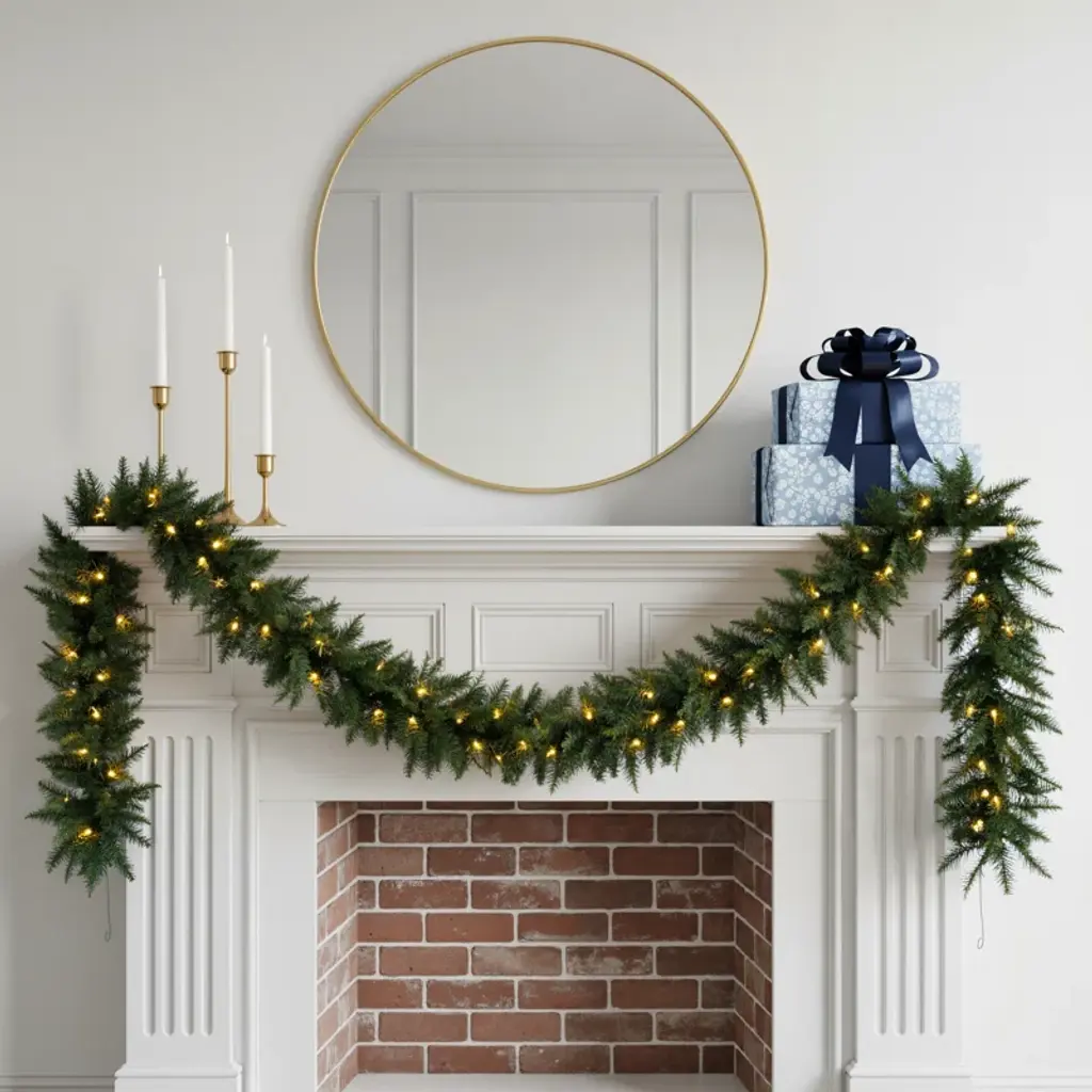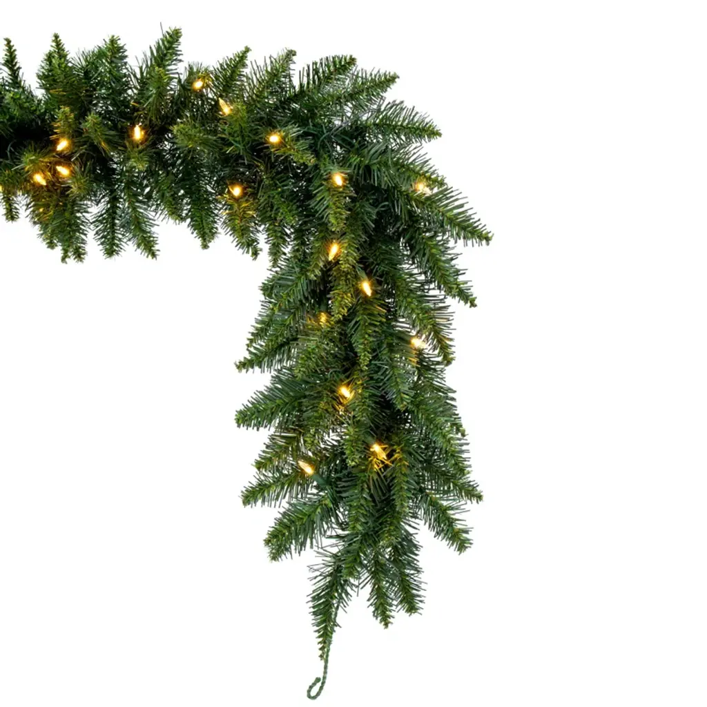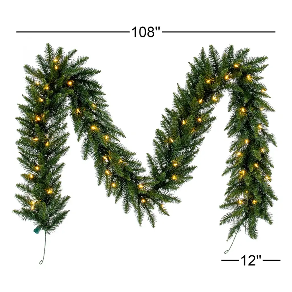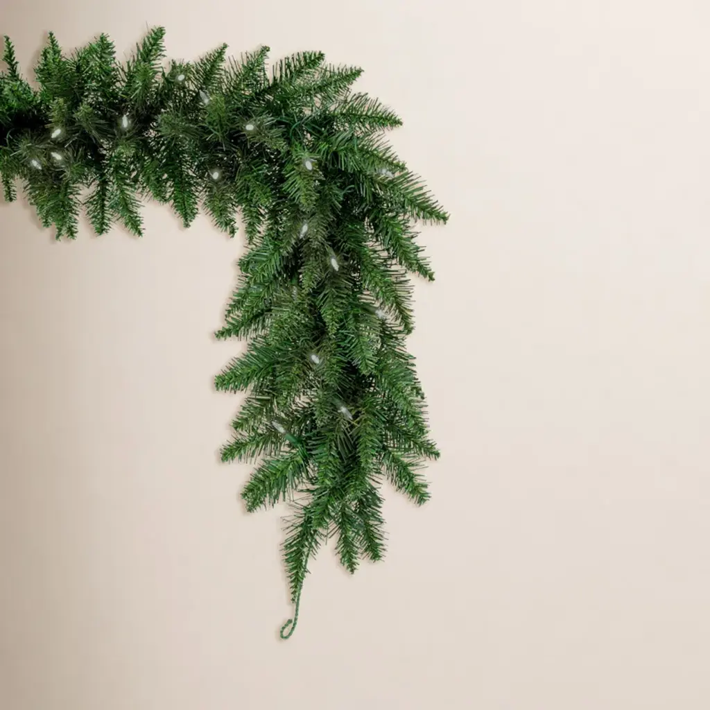 Decorate your staircase, entryway, or fireplace mantel with this festive garland - a great way to ring in the holiday season! Made to mimic the real thing, this faux fir trim stays green year after year with no watering or preserving needed, and it can be used indoors and outdoors. It arrives pre-lit with 50 LED lights that can easily be plugged in thanks to its handy plug-in feature. Add this to your outside door for a touch of Christmas spirit, or line your entryway to wow all your friends.