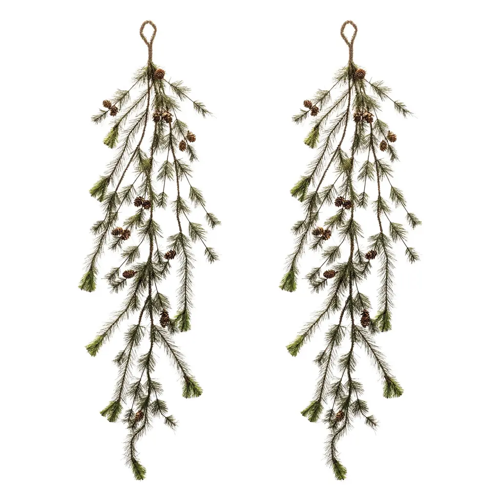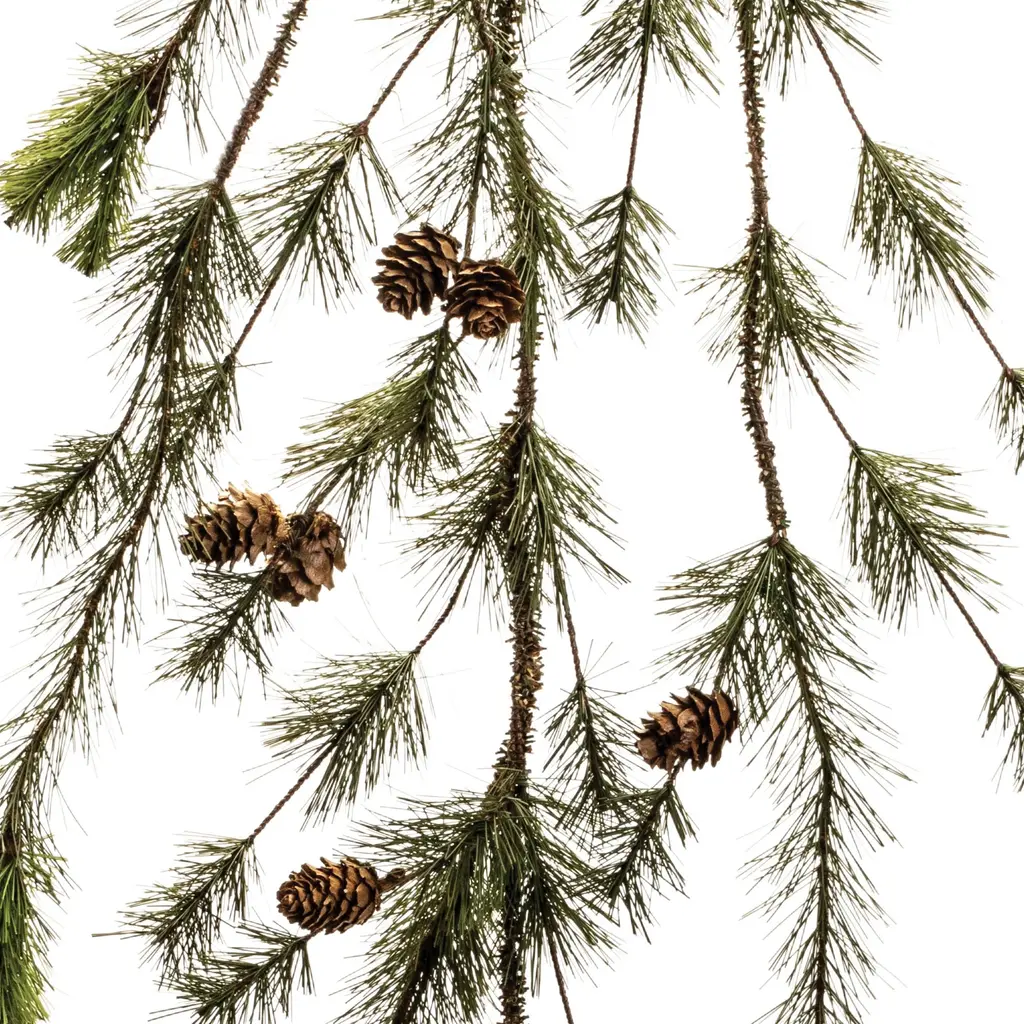 Bring the beauty of nature into your holiday decor with this Pine and Pinecone Garland. Featuring earthy green and brown tones, this garland is crafted with rustic pine foliage and accented with natural pinecones for an authentic woodland feel. The wired branches allow for easy shaping and versatility, making it perfect for adorning your fireplace mantle, tabletop displays, or wreaths. Add a few holiday floral picks or ornaments to complete the look and create a charming, nature-inspired holiday atmosphere. Sold in a set of two matching pieces.