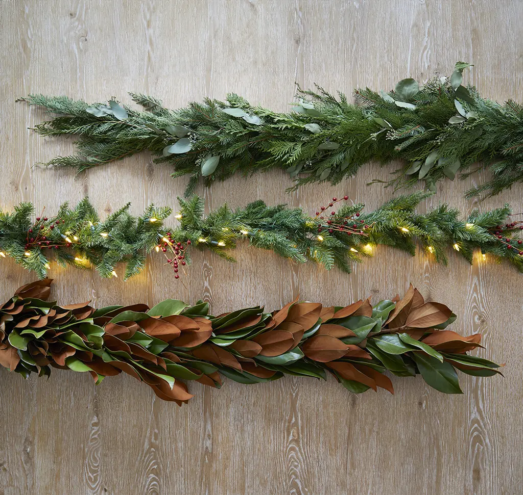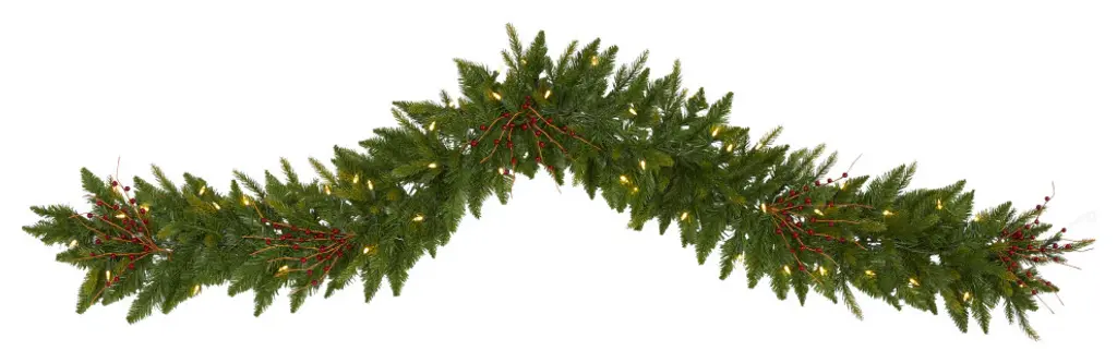 Prestrung with 150 clear LED lights, this six-foot-long faux garland features 120 bendable faux pine tips and equally lifelike holly berries. Whether you hang it over a mantel, wrap it around a railing, or place it on your dining table as a runner, the garland will instantly imbue your home with Christmas spirit.