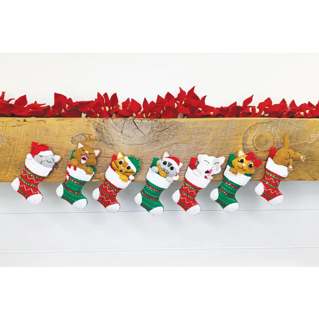 Add a dose of feline fun to your holiday décor with the Playful Kittens Felt Garland Kit from MerryStockings. This cheerful garland features a lineup of curious cats dressed in Santa hats, scarves, and festive winter wear—each one stitched with personality. Whether you’re decorating a mantel, doorway, or cozy reading nook, this project is a heartwarming way to celebrate the season (and your love of cats). This complete kit is perfect for experienced crafters and includes everything needed to create a keepsake garland you'll love to hang year after year.