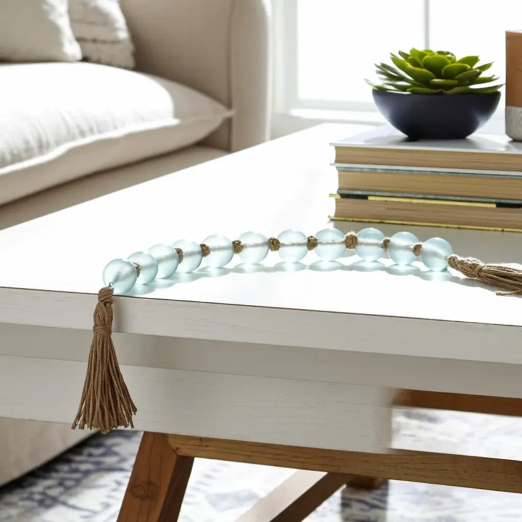 Sagebrook Home Morrigan Beaded Garland: Enhance Your Space With Eco-Friendly Mango Wood & Jute - Rustic Home Decor Beads, Pack Of 1