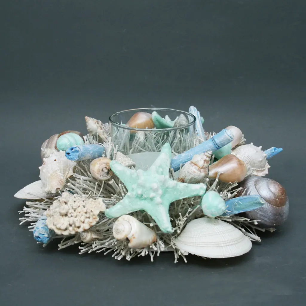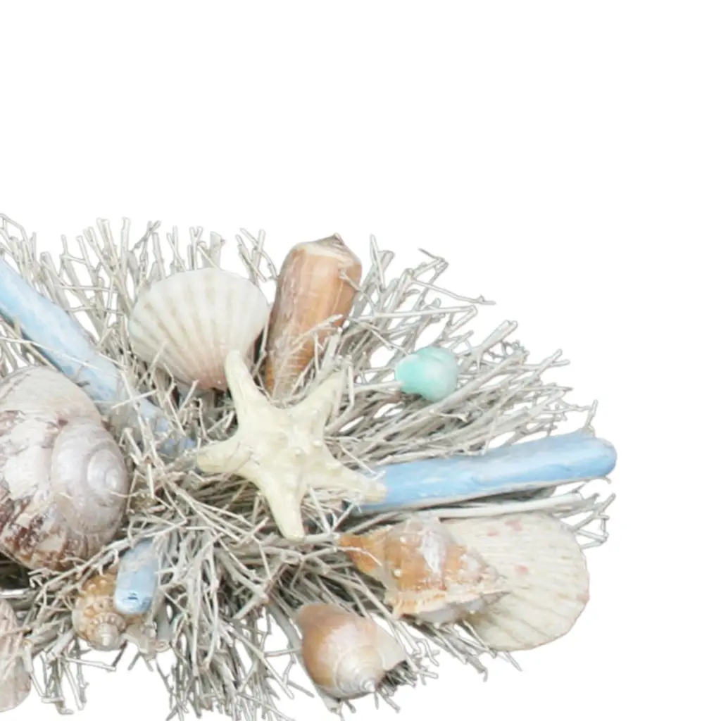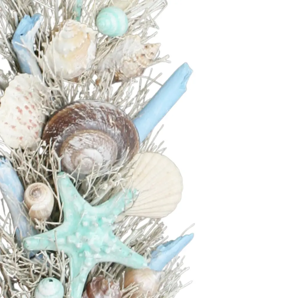 Transform your space with the tranquil beauty of the shore. This handcrafted garland features real shells in soft ivory tones, woven among layered shades of blue - from airy sky to misty aqua - that evoke the peaceful rhythm of ocean waves. Coco twigs add natural texture and structure, creating a balanced composition that feels both organic and refined.